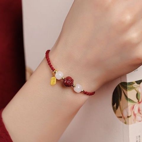 上岸考试考研朱砂好运珠莲花平安红绳编织手链女本命年闺蜜毕业礼