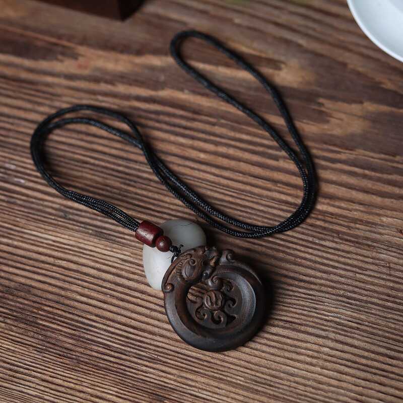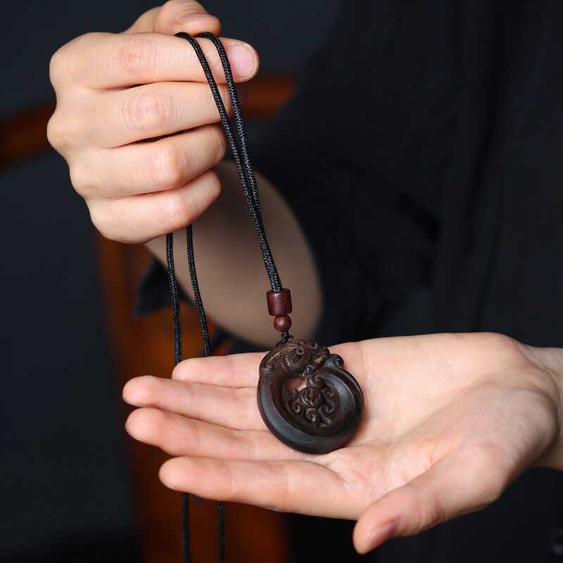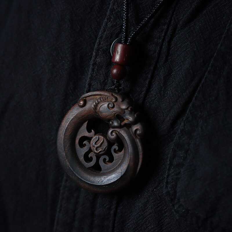 沉香木雕龙牌项链吊坠龙化龙情侣平安扣雕刻车挂随身原木挂件脖挂