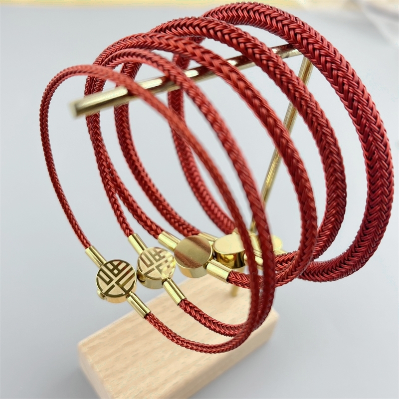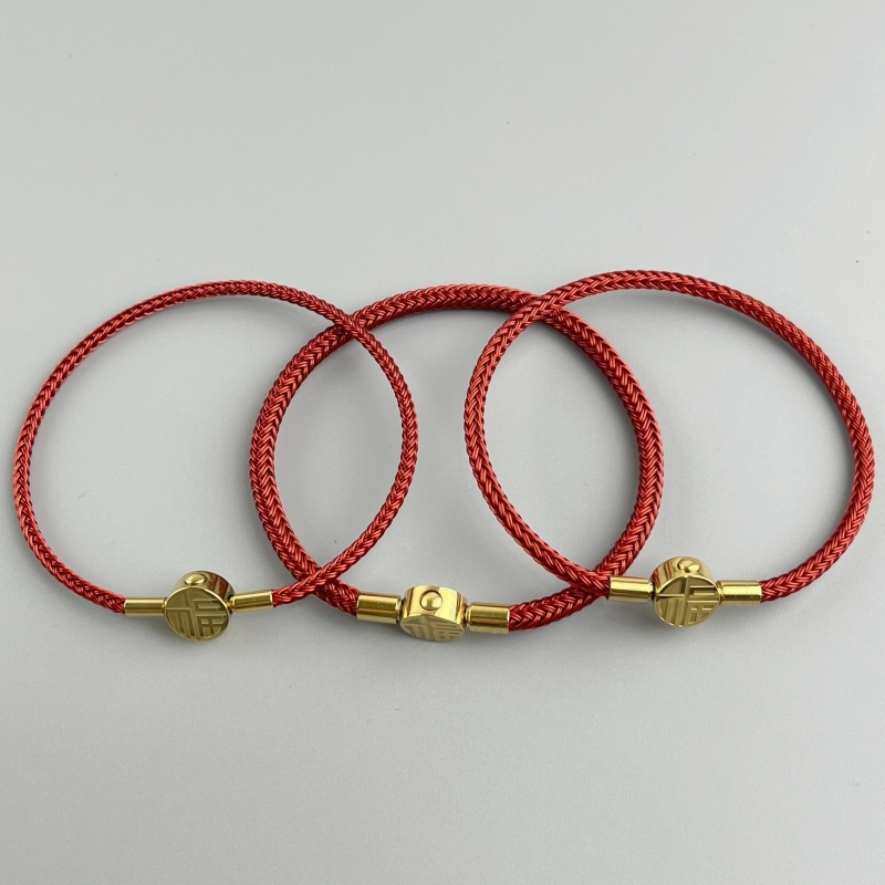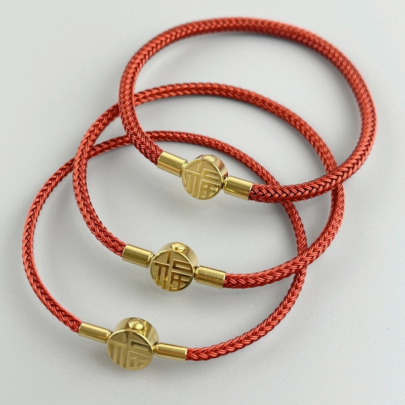 2345MM钢丝绳手链本命年福字手绳可穿3D硬金黄金转运珠编织红绳