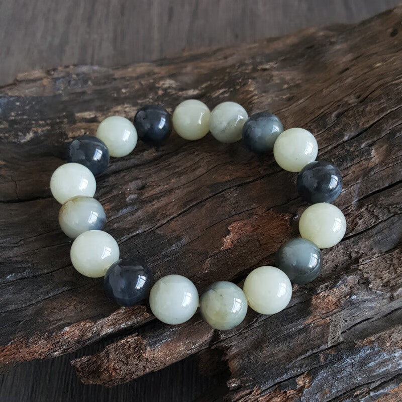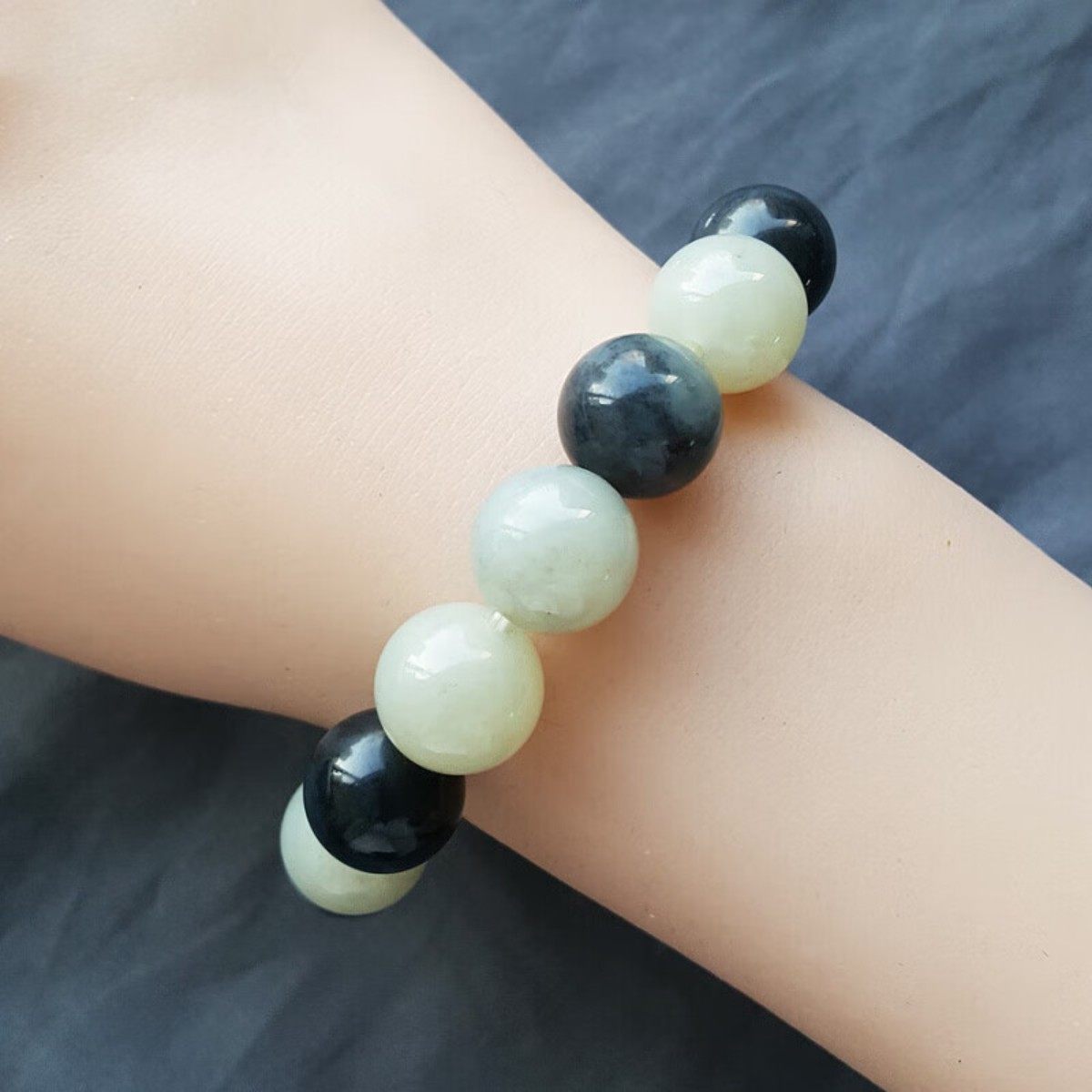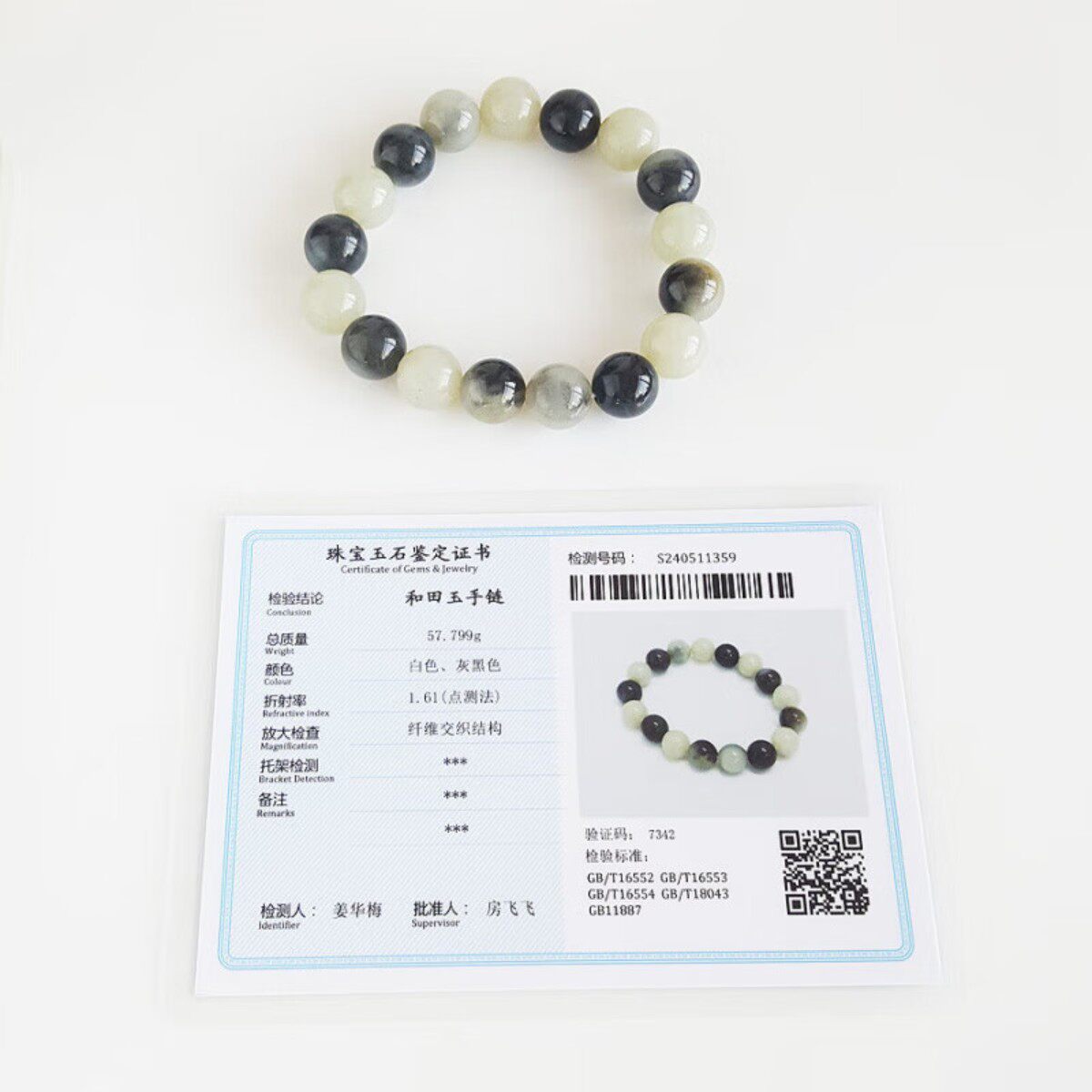 名古宝天然和田玉手串青白色串珠正品可搭配和田玉项链戒指
