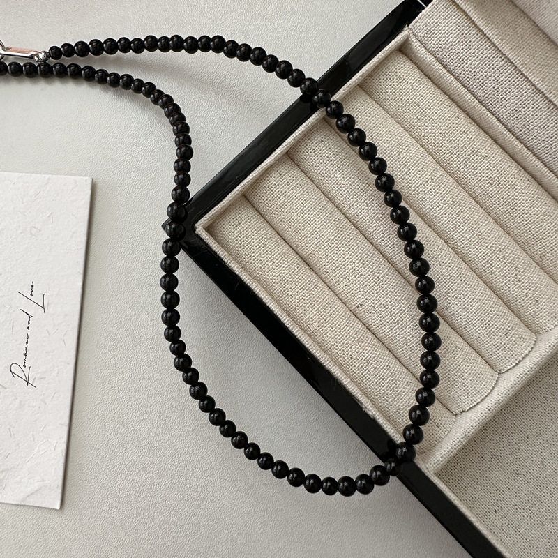 S925纯银fever同款黑玛瑙项链日韩版ins博主同款可叠戴串珠锁骨链
