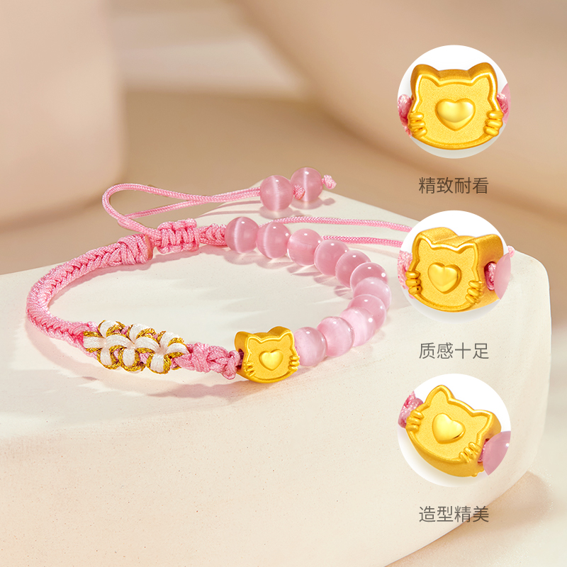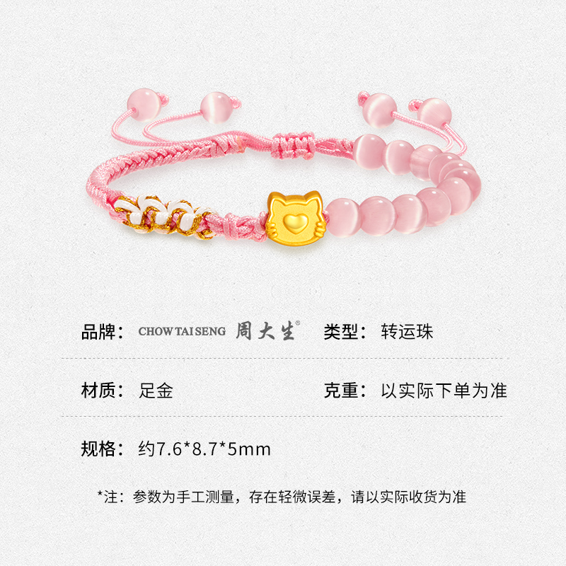 周大生黄金转运珠hellokitty爱心小猫转运珠送女友老婆节日礼物