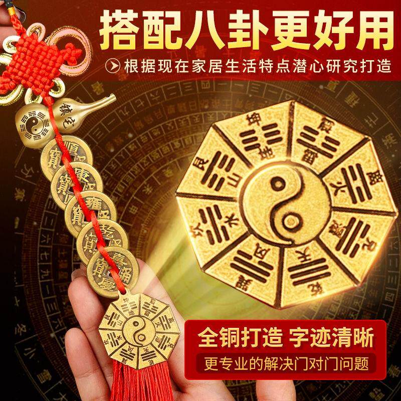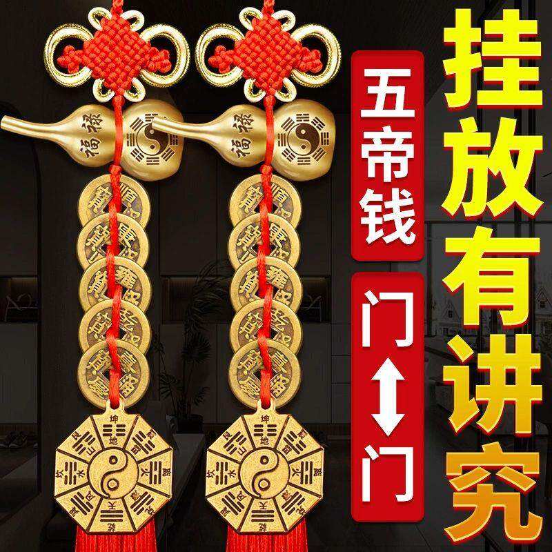 铜五帝钱葫芦八卦牌挂件门对门中国结邻居卧室入户门真品铜钱挂饰
