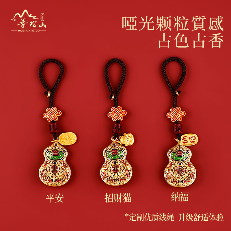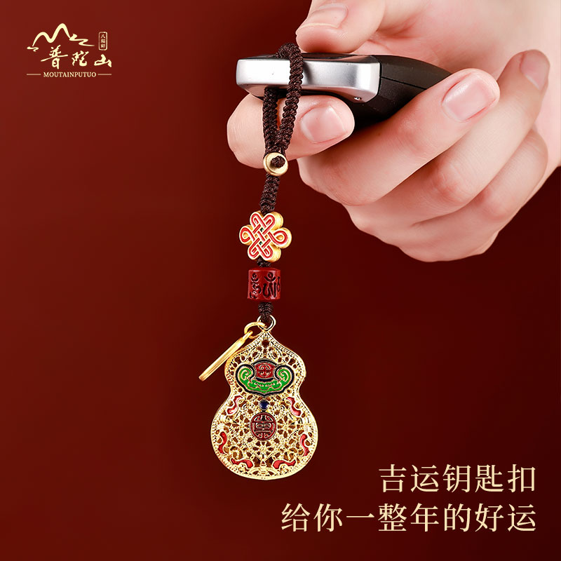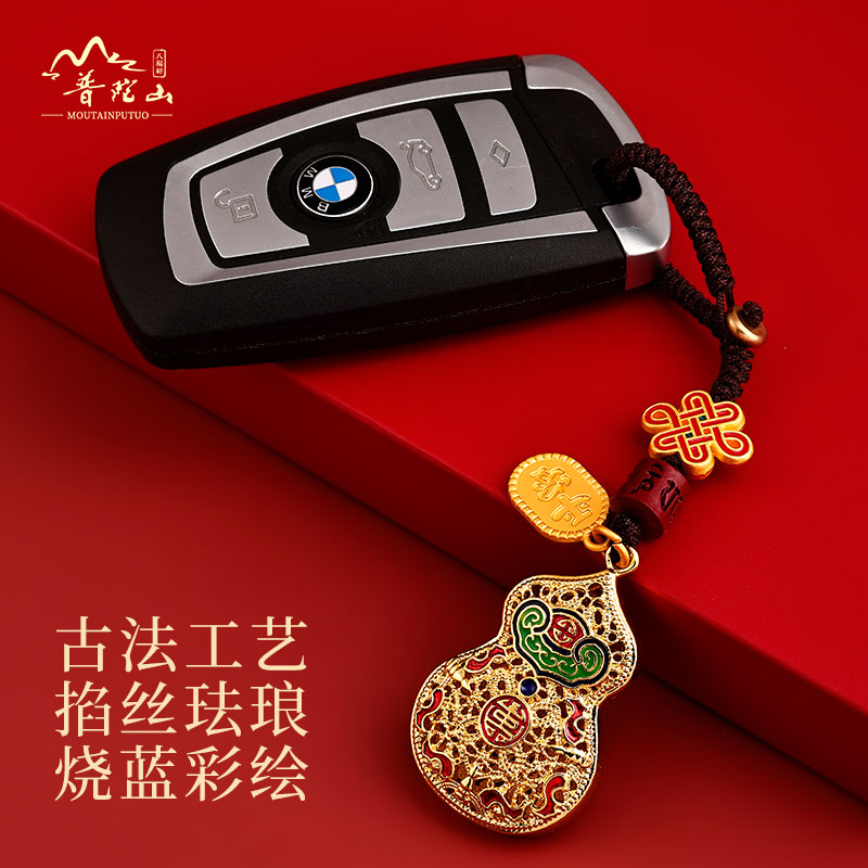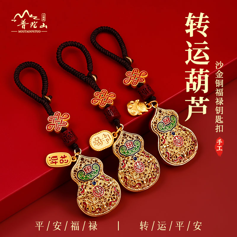普陀山平安葫芦汽车钥匙扣挂件沙金男女福禄高档创意包包挂饰礼物