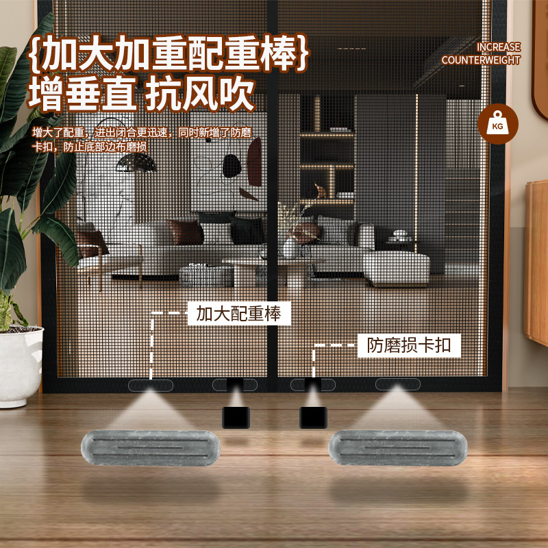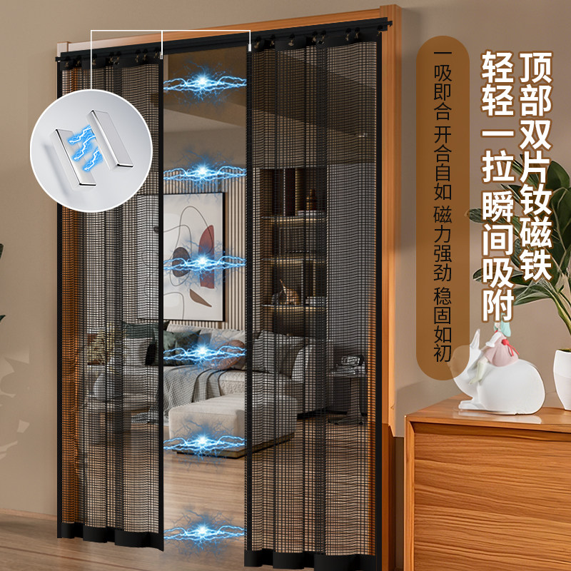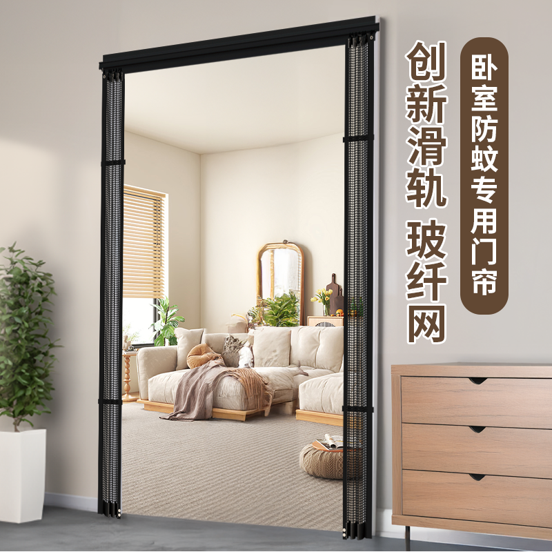 创新滑轨轨道防蚊门帘强磁免打孔入户门通风隔断门帘新款收纳纱门