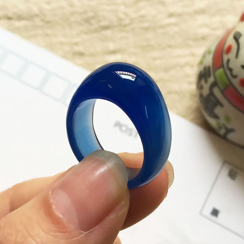 招财转运玛瑙男女款戒指 天然蓝色冷淡风时尚玉髓水滴扳指食指环