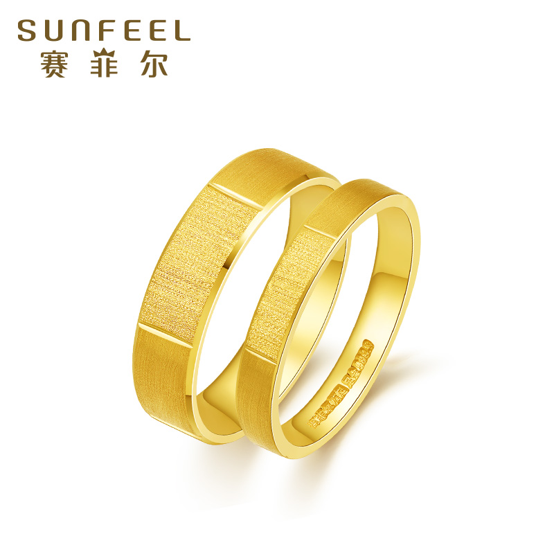 赛菲尔黄金戒指足金999.9拉丝圆环素圈金指环简约百搭女戒送女友