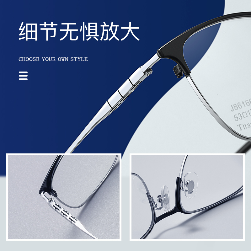 超轻纯钛全框眼镜架男款休闲商务可配防蓝光抗辐射近视镜片眼镜框