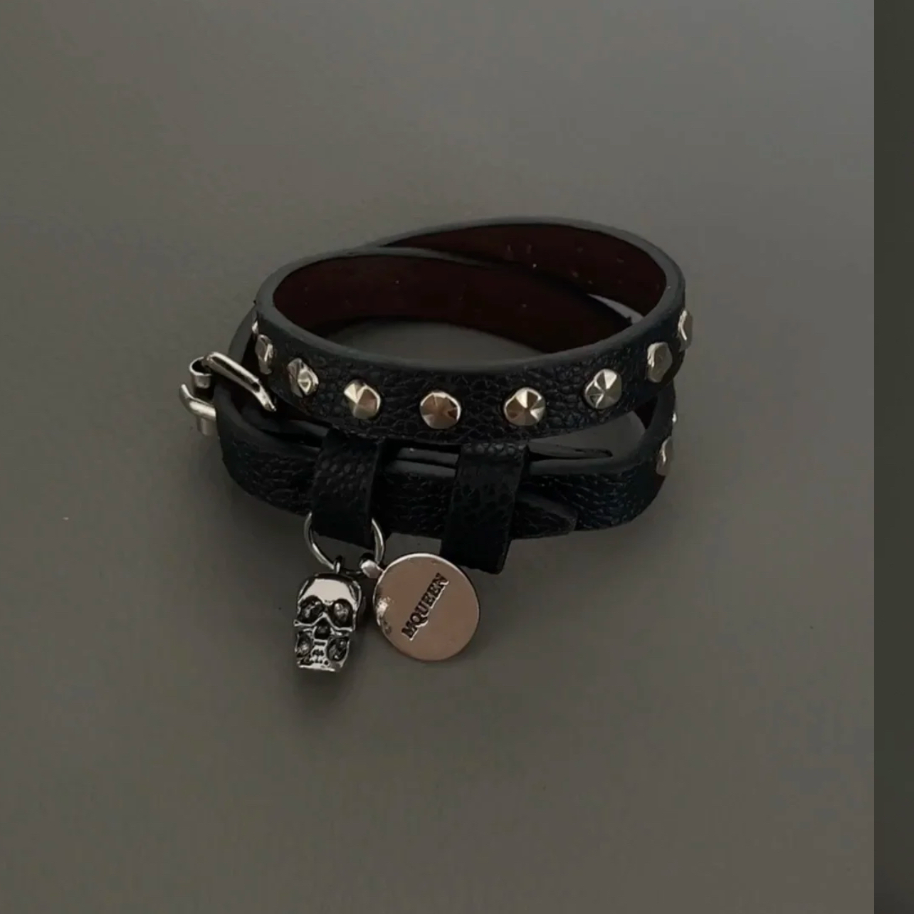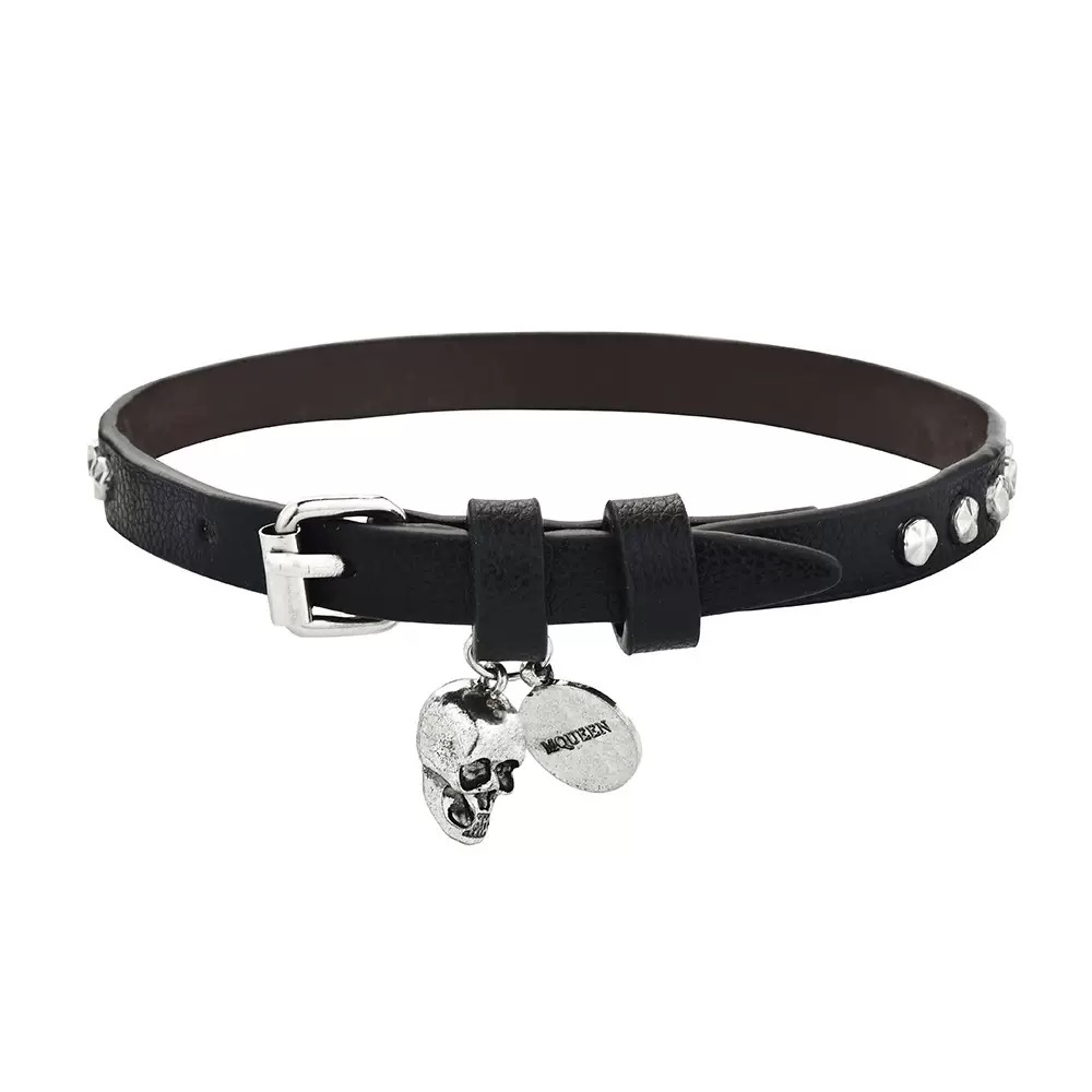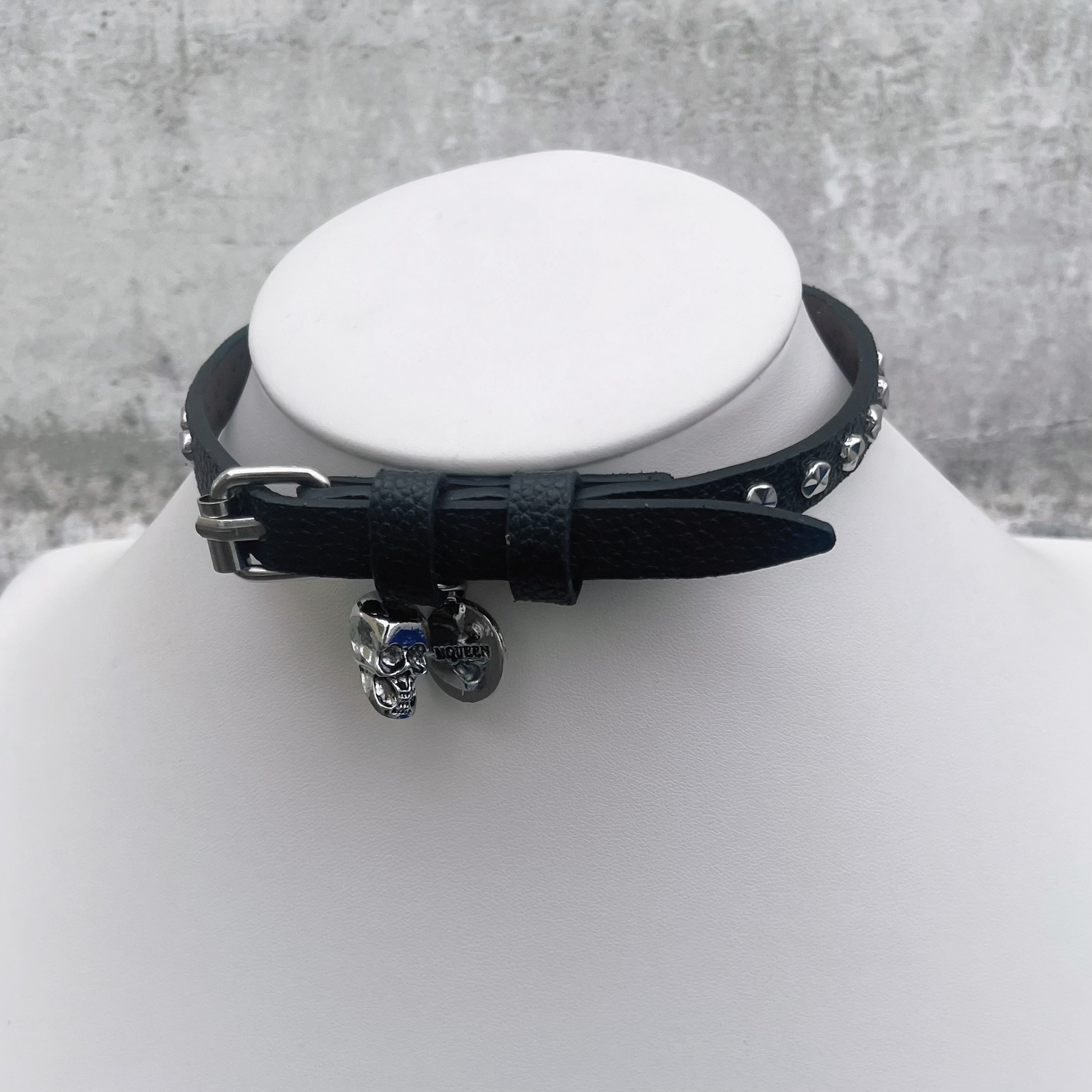 27Usr 哥特骷髅吊坠项圈黑色铆钉手环颈环两戴朋克百搭皮革choker
