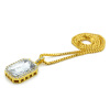 街头嘻哈复古红蓝黑绿色长方形大宝石潮男女镶钻石吊坠hiphop项链