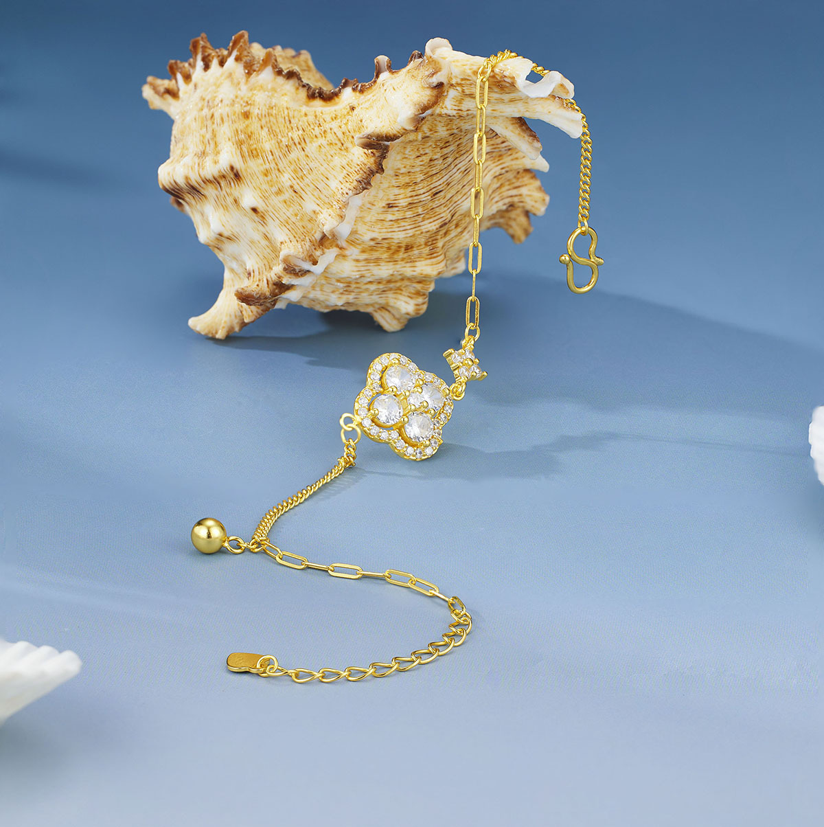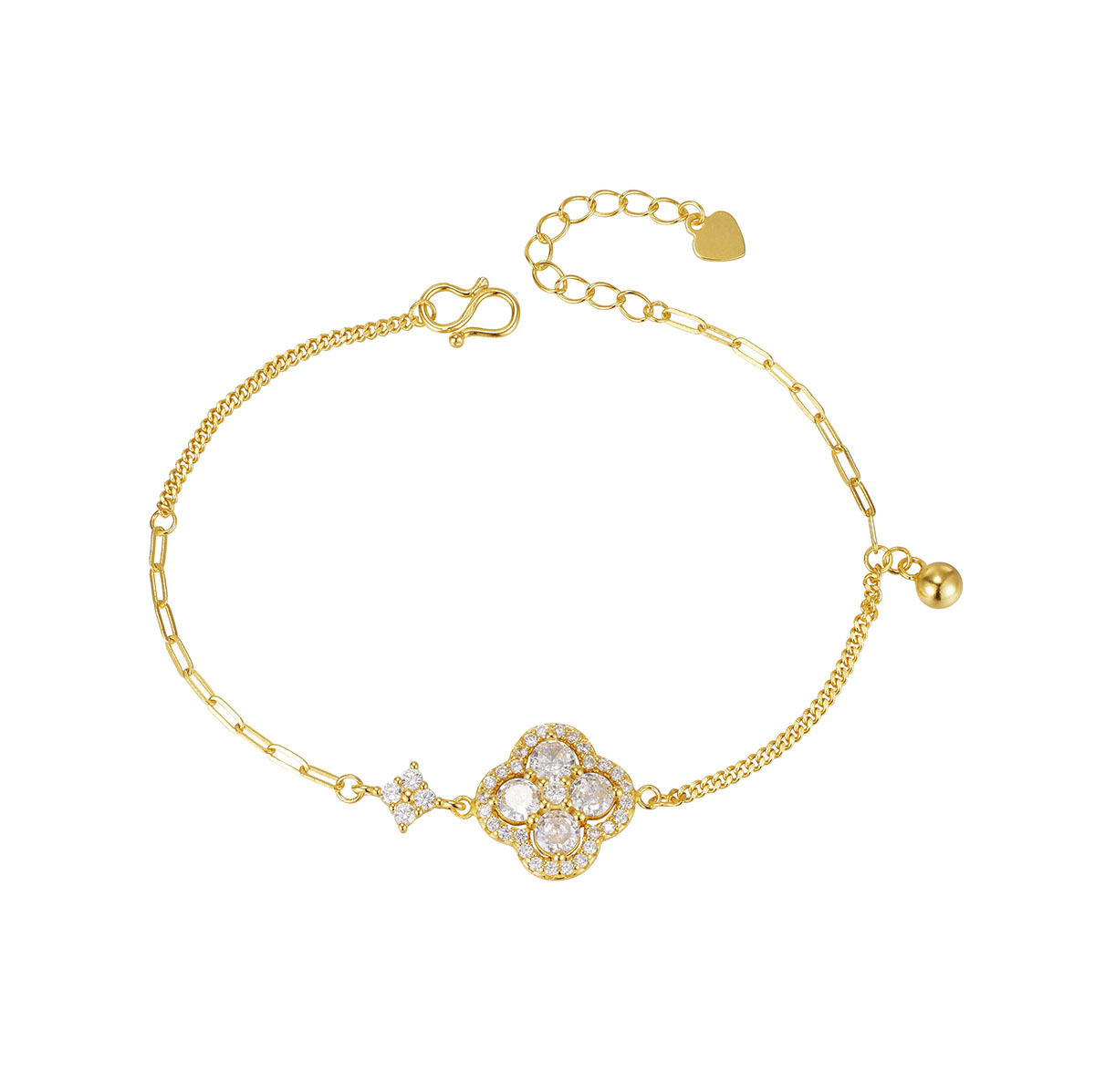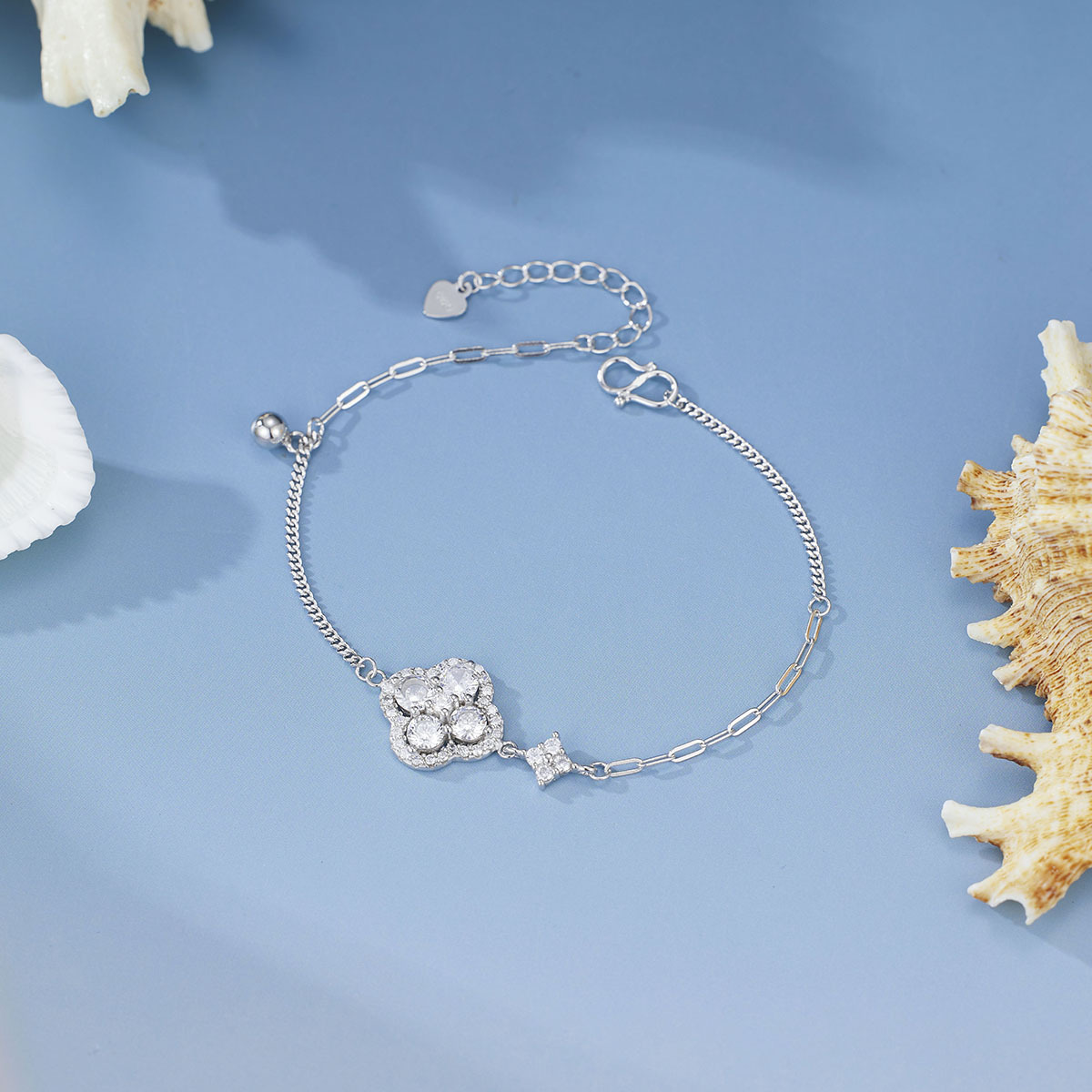 s925纯银新款时尚四叶草镶钻爆闪亮手链女欧美风轻奢级感手饰饰品