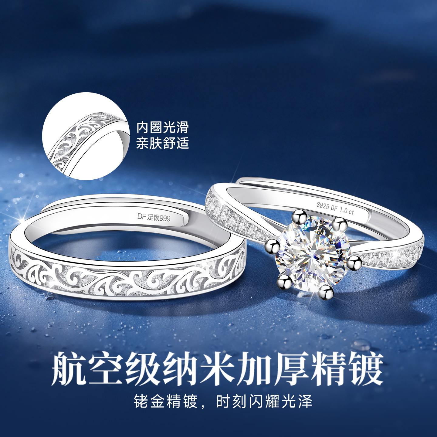 银纯银莫桑石钻石莫桑钻戒指情侣对戒情侣款2025新款爆款结婚婚戒