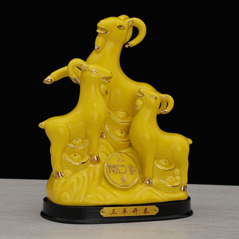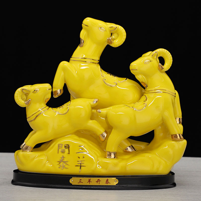 速发大号陶瓷三羊开泰摆件黄色羊招财镇宅三开泰家居开业乔迁礼品