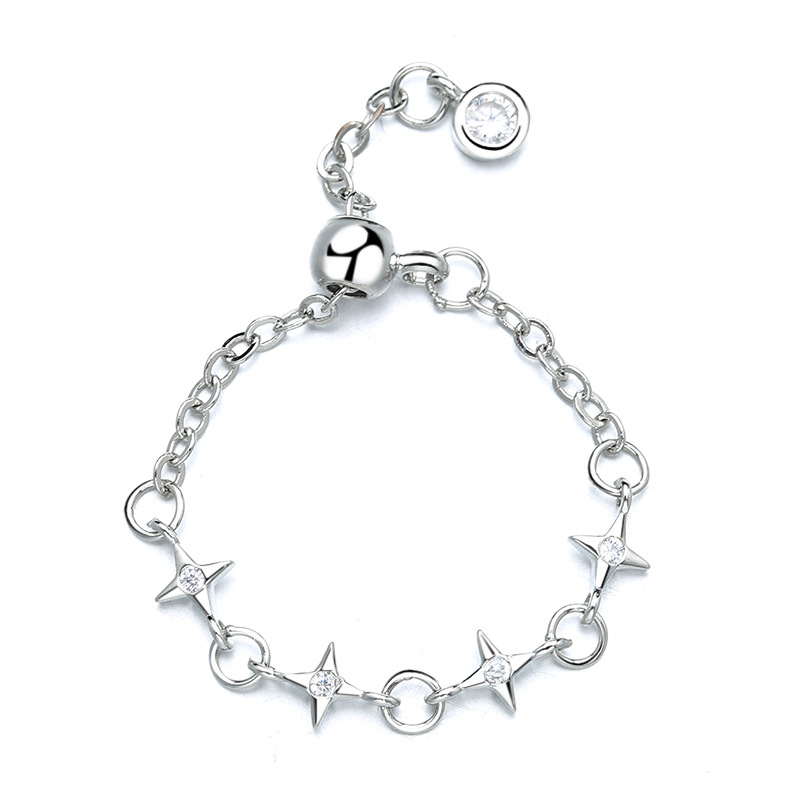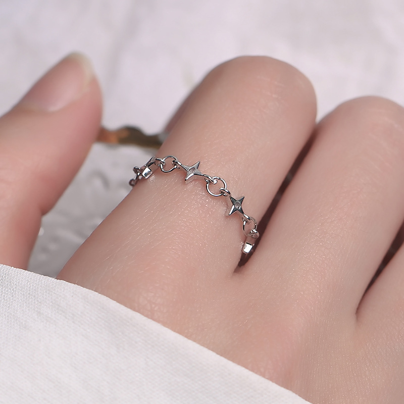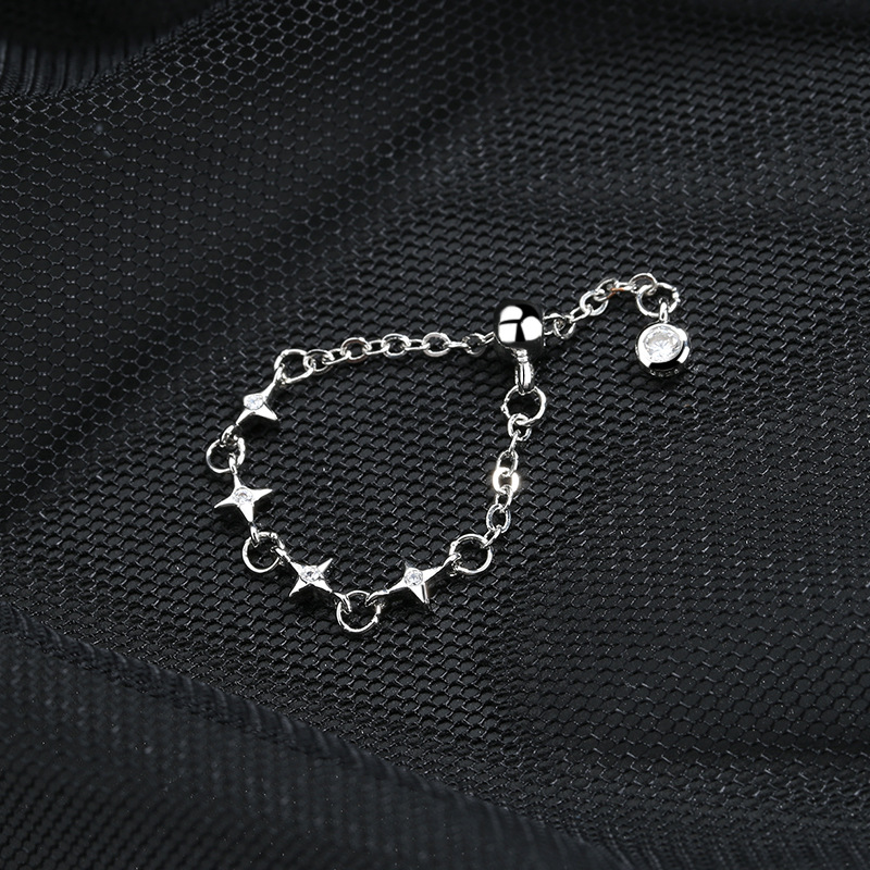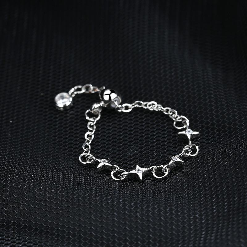 宁语 链条尾戒抽拉式可调创意设计网红时尚镶钻四角星星戒指女