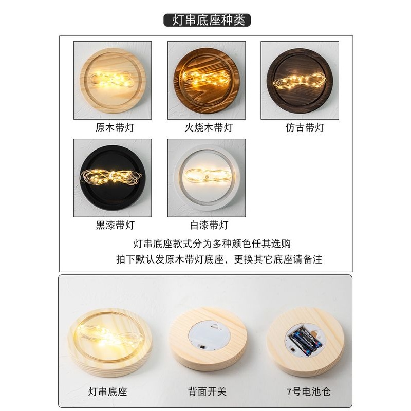 新款永生花玻璃罩 原木LED发光底座侧面独立开关积木手办防尘展示