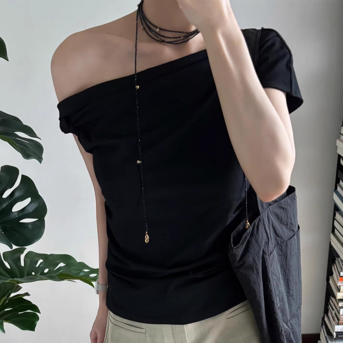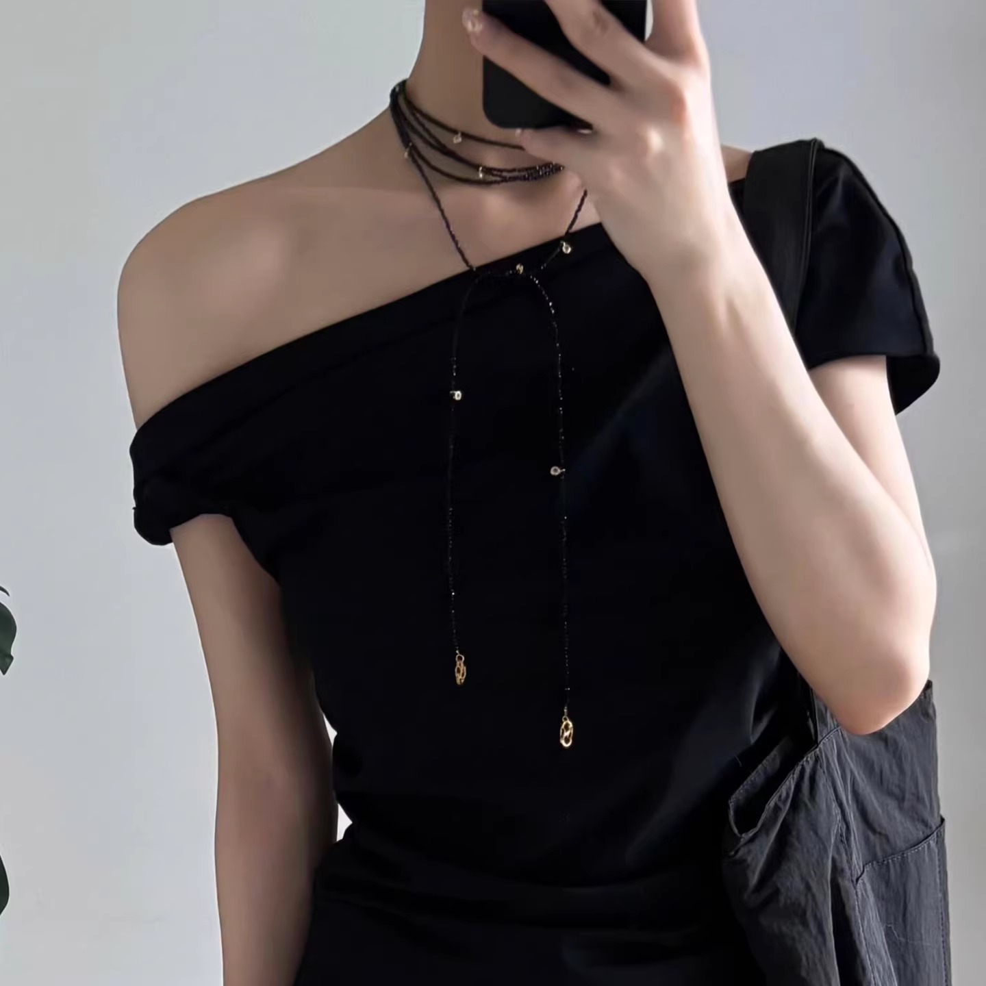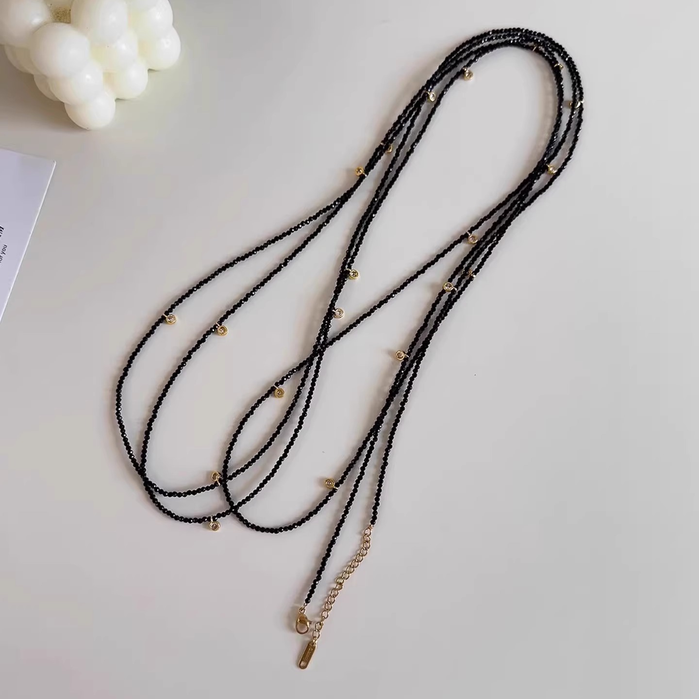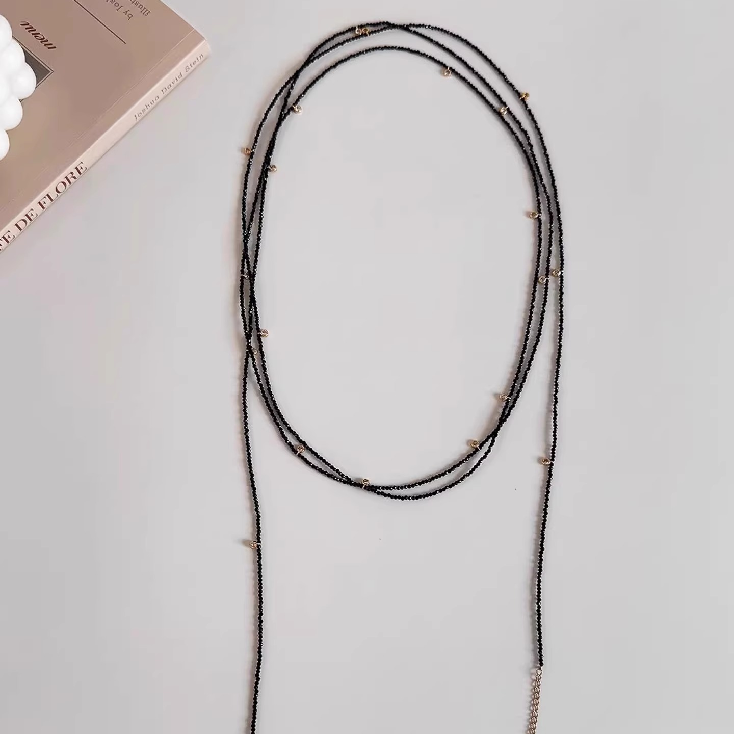 韩国博主同款黑金串珠项链女ins风高级感精致气质多层叠戴锁骨链