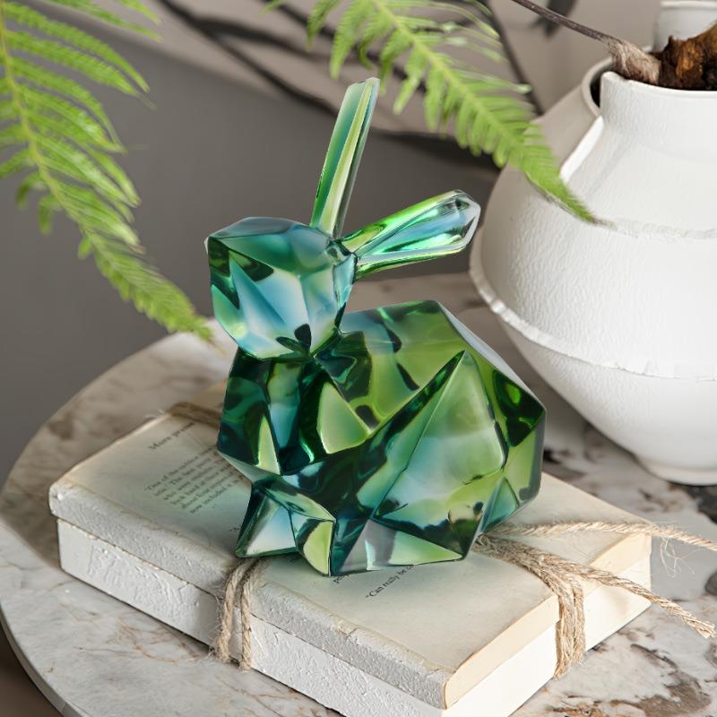 现代轻奢树脂渐变绿色可爱兔子高级感艺术创意摆件家居桌面装饰品