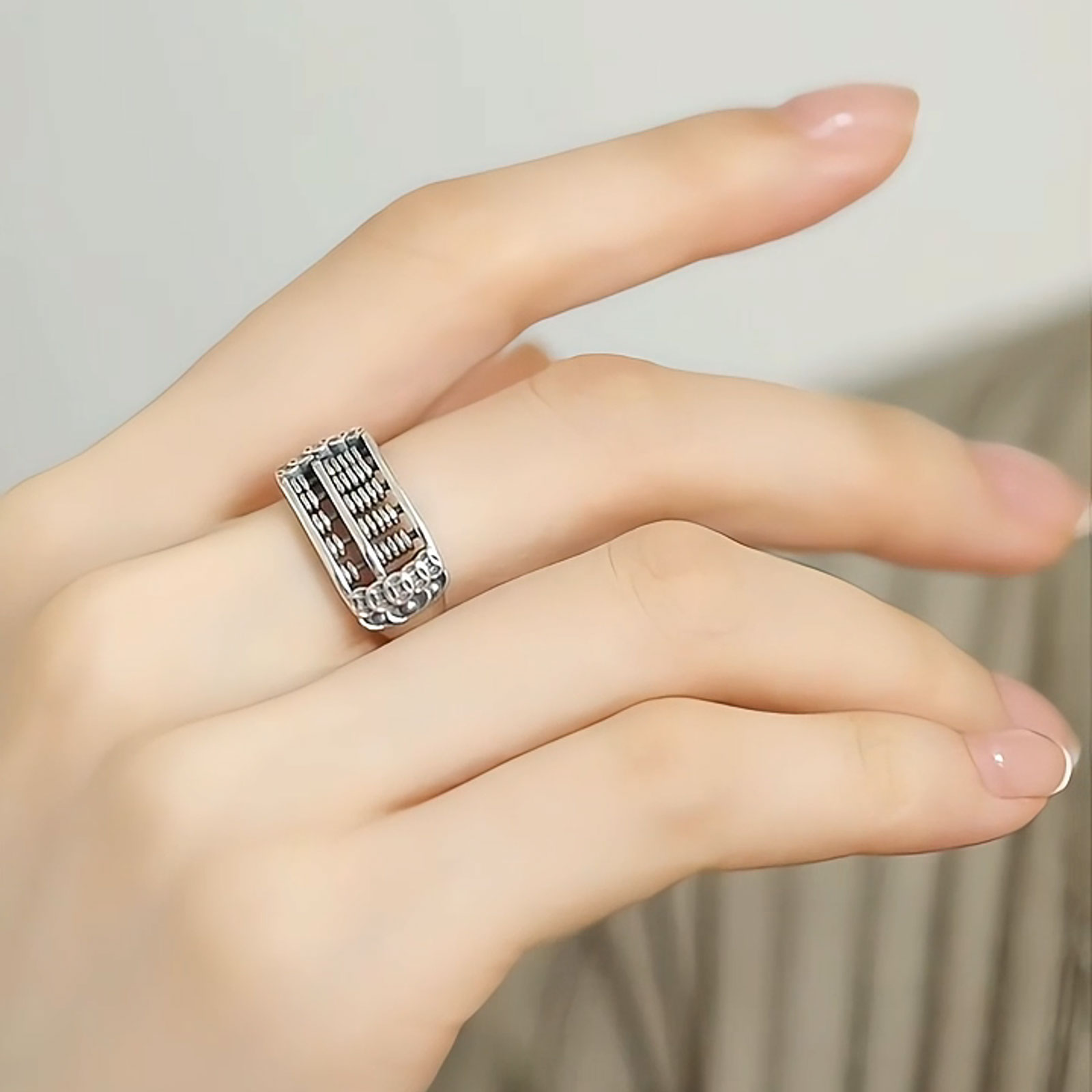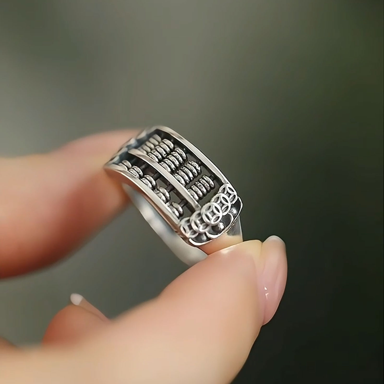 复古925银钱币算盘戒指新中式小众设计可拔动开口可调节个性指环