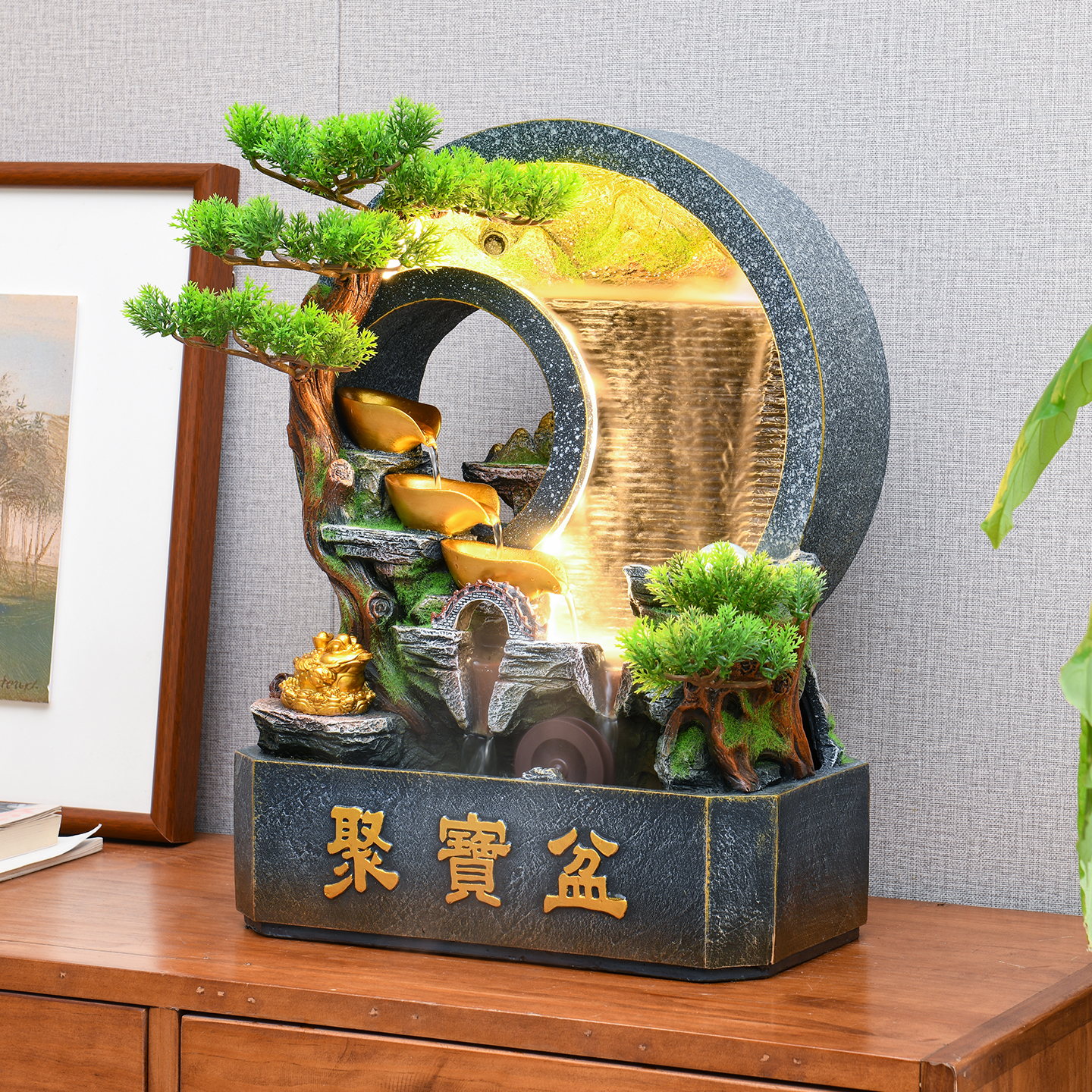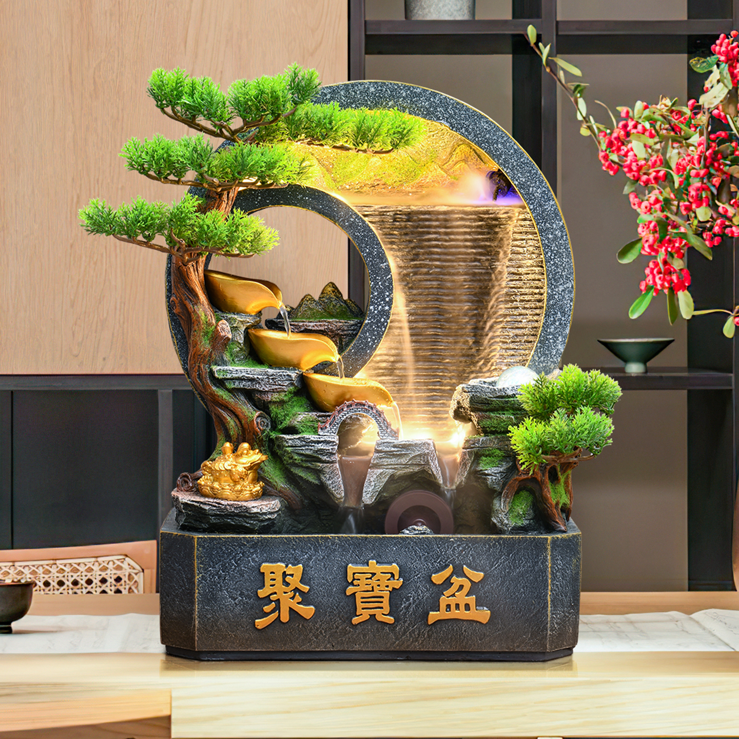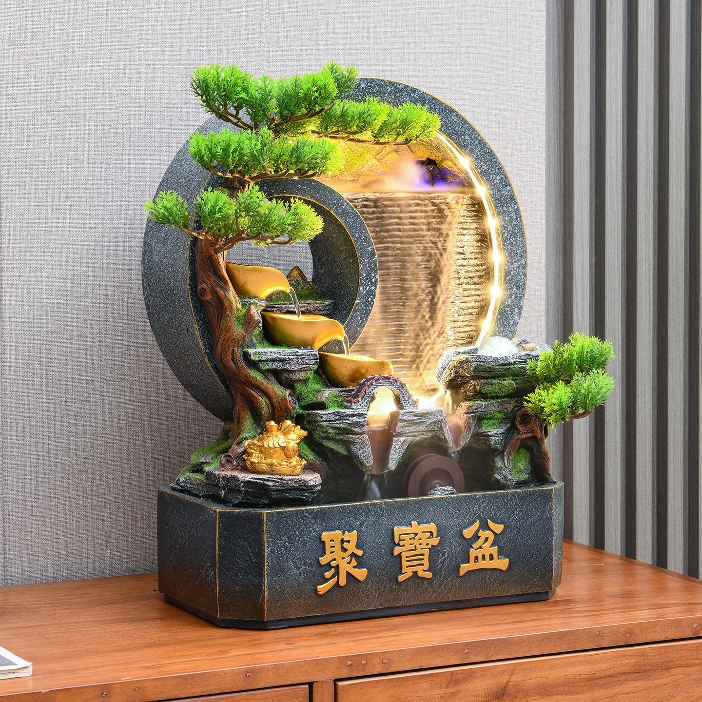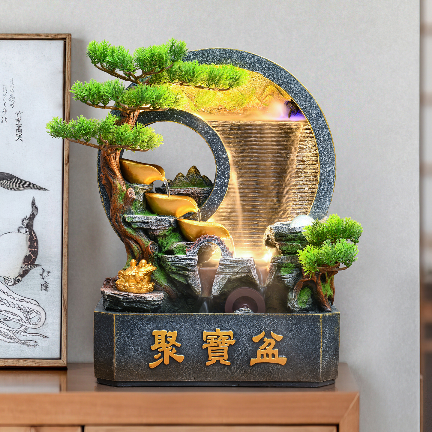 假山流水生财摆件循环水景办公室客厅玄关风水轮桌面摆件开业乔迁