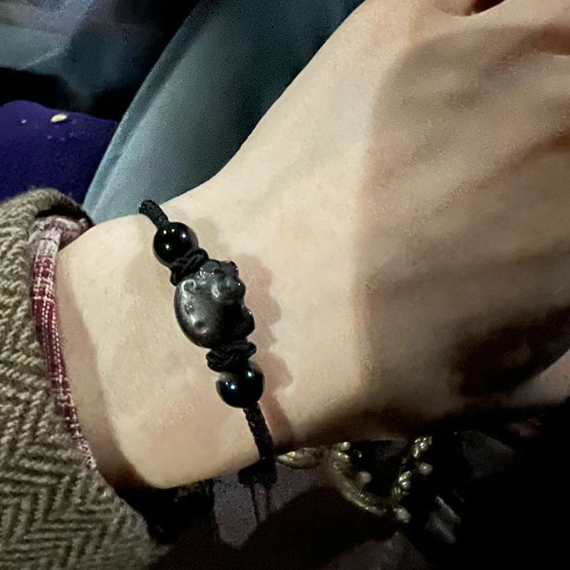 复古风黑色Hello kitty猫编织手链2023年新款小众文艺风饰品