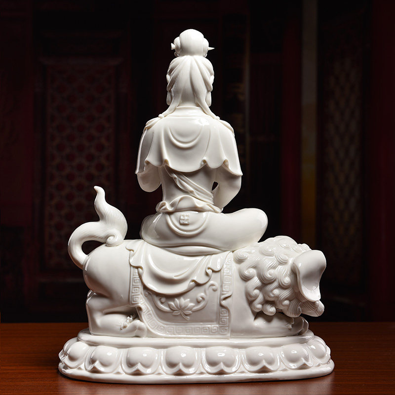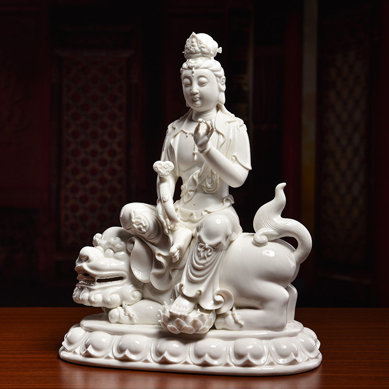戴玉堂陶瓷摆件《文殊普贤菩萨像》林建胜佛像客厅供奉家用艺术品