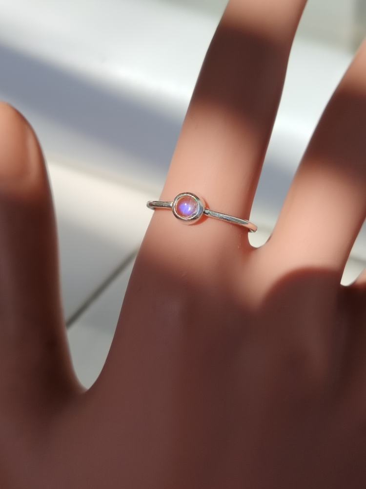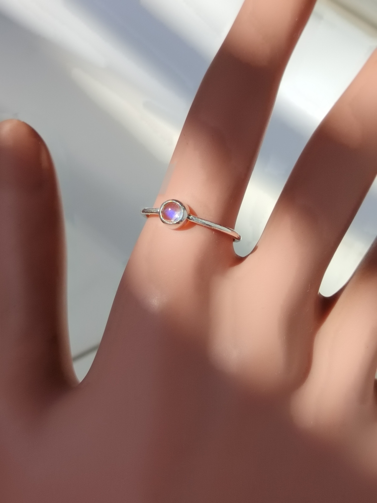 手工足银蓝色月光石戒指通勤款细戒女定制