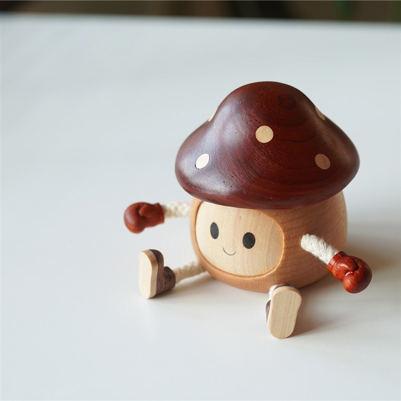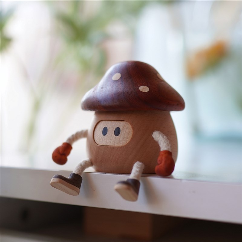蘑菇小木偶摆件创意n可爱治愈系桌面装饰品送朋友闺蜜生日礼物女