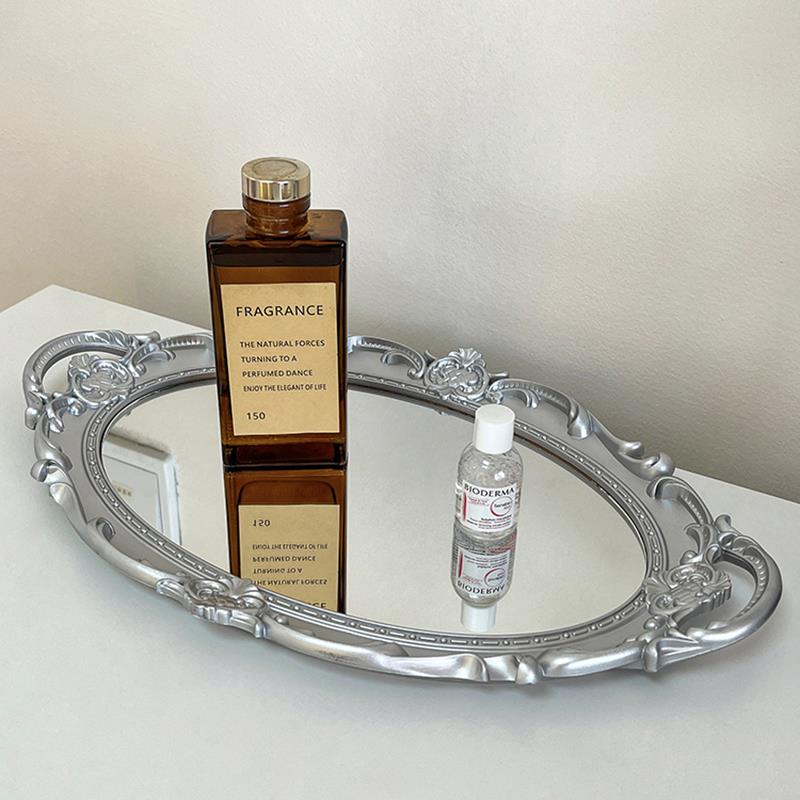 ins风复古法式玻璃镜面托盘客厅装饰摆件香薰首饰展示镜子收纳盘