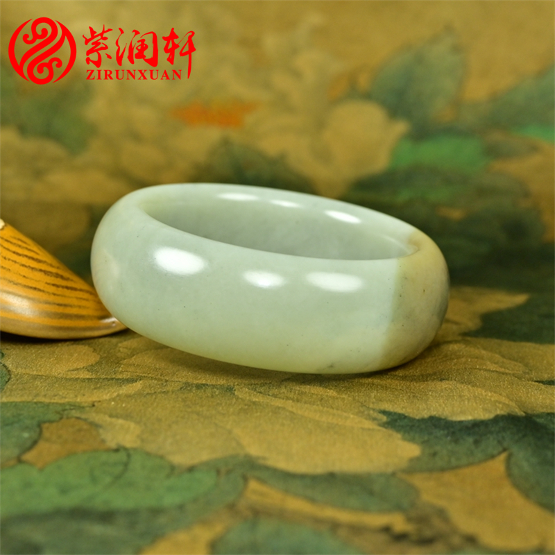 紫润轩新疆和田玉宽条糖青白手镯且末料三色59老料正宗轮胎传家级