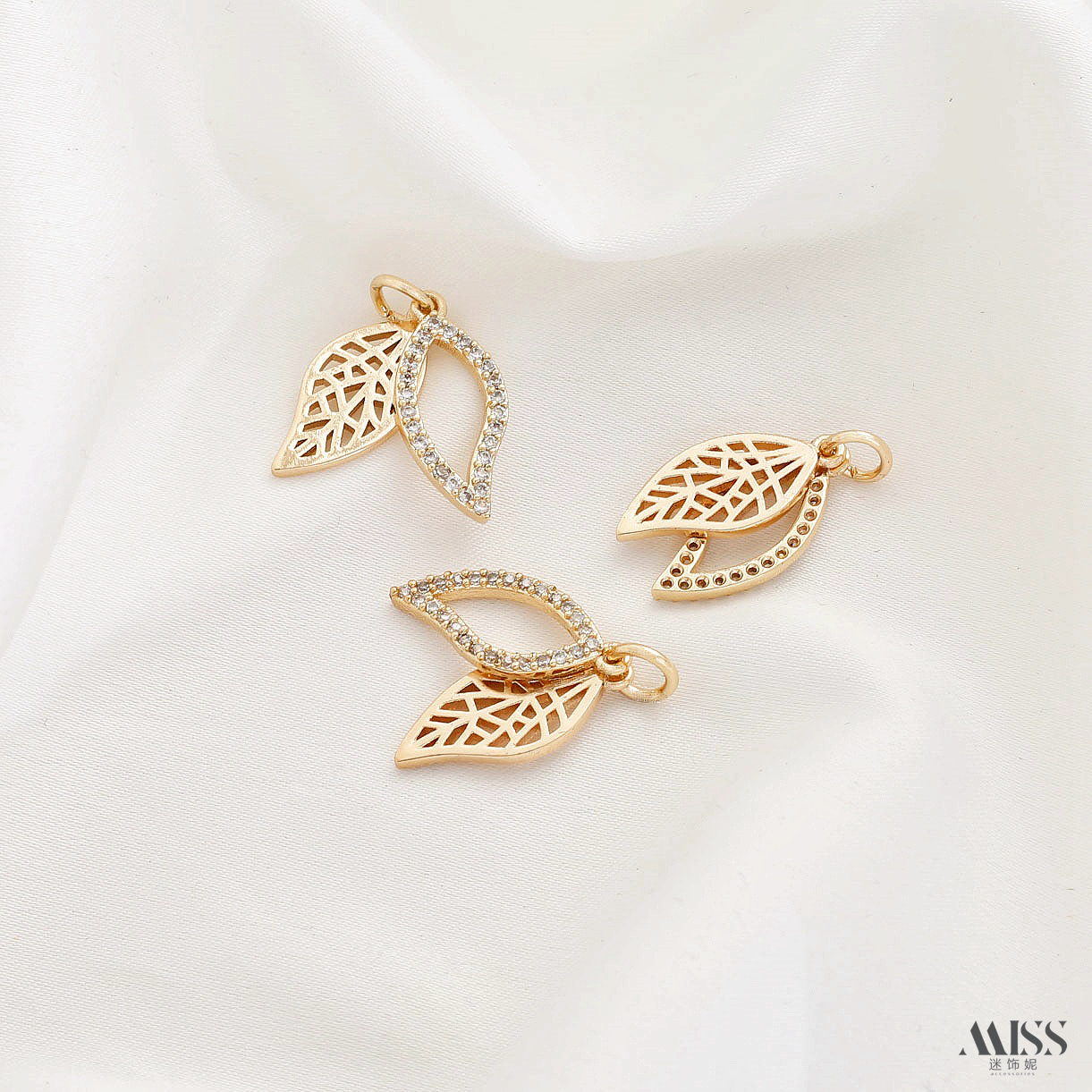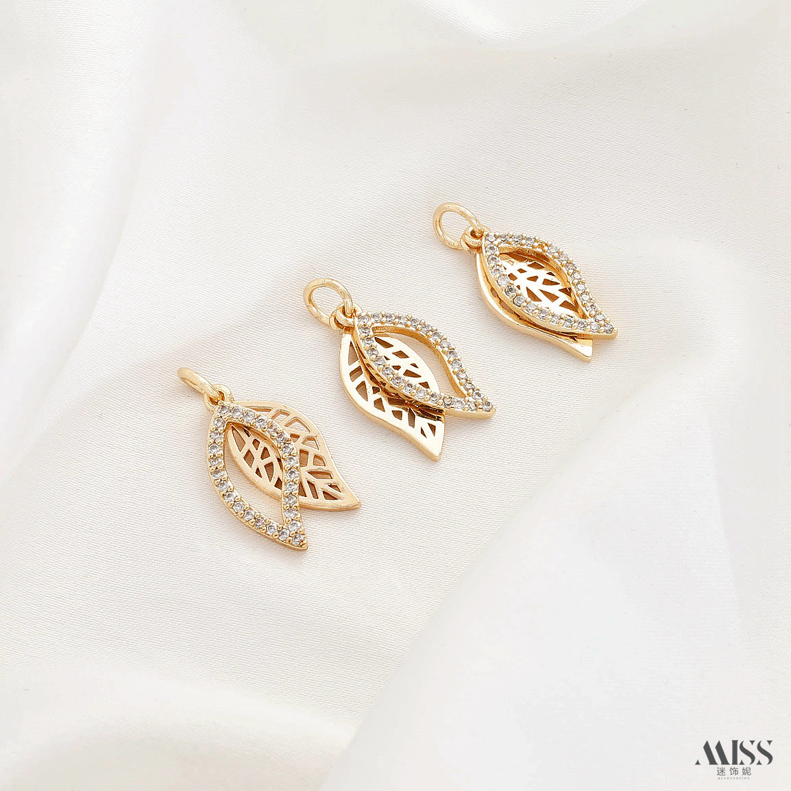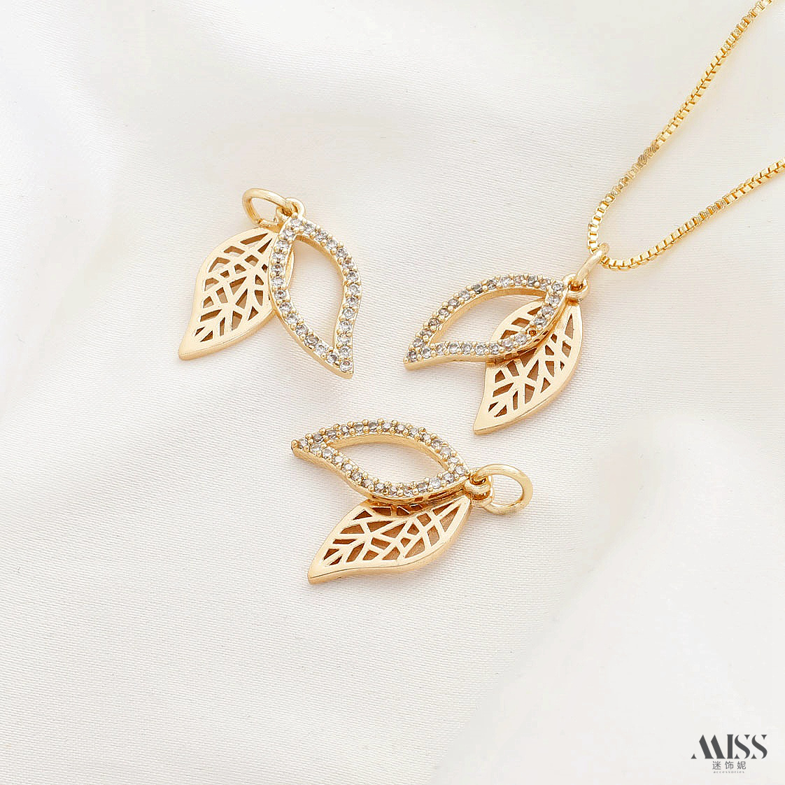 14K包金保色镶锆石双层树叶吊坠diy手工手链项链挂件饰品配件材料