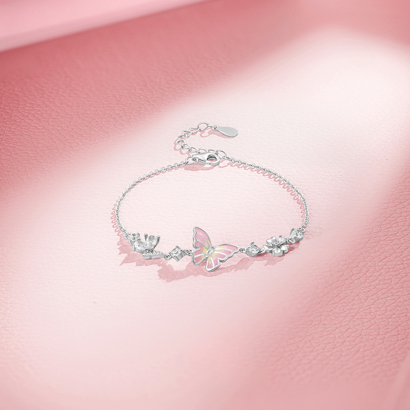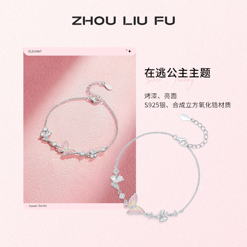 周六福饰品手链女蝴蝶结手饰S925银幻彩蝴蝶小众送女友圣诞礼物