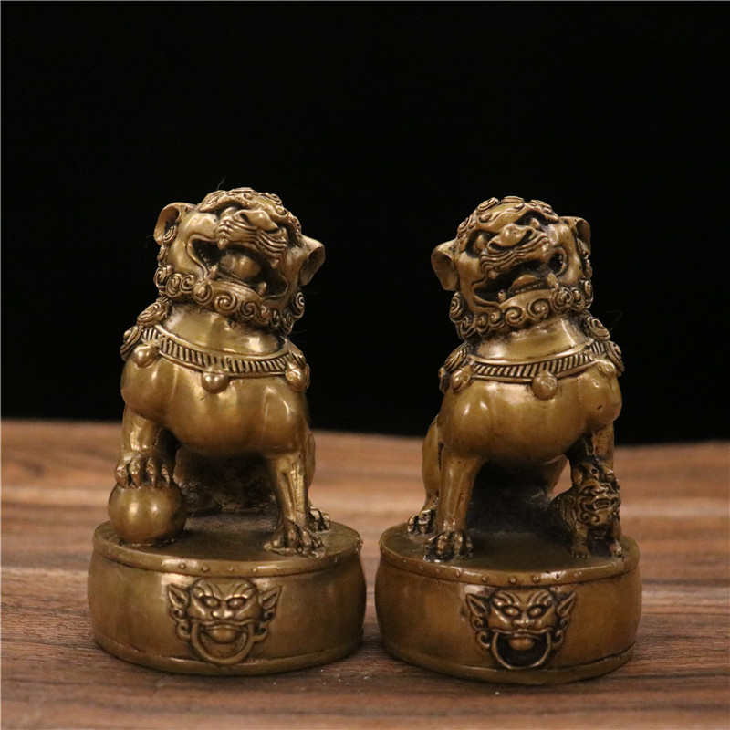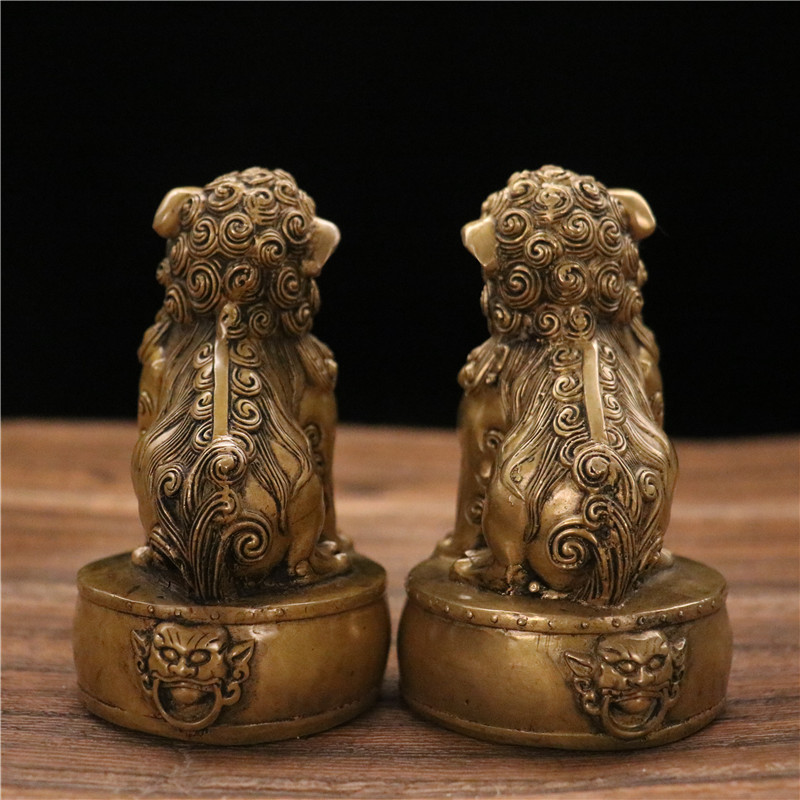 狮子摆件 黄铜门狮北京狮一对 故宫狮家居风水桌面装饰工艺品