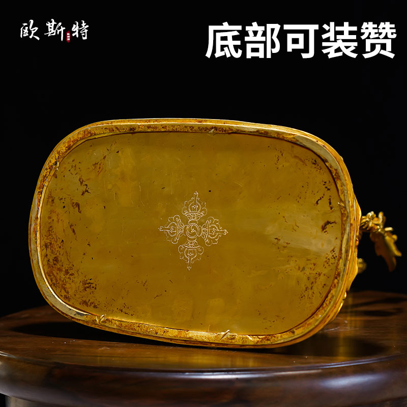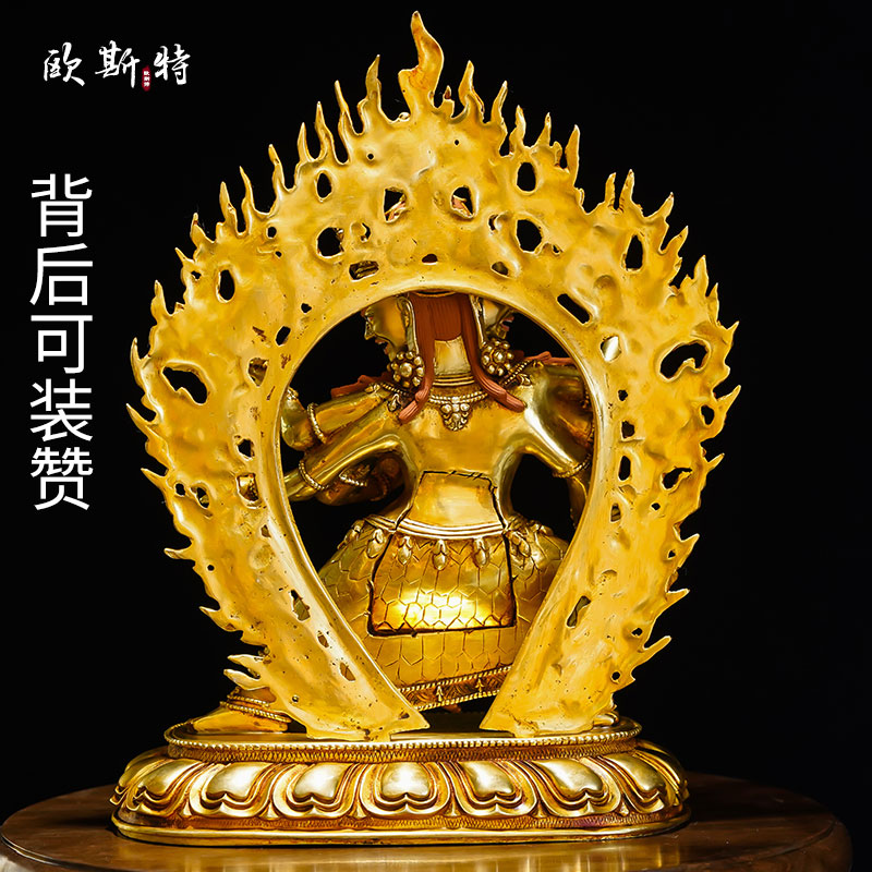 欧斯特《叶衣佛母铜像摆件》錾刻尼泊尔工艺铜鎏金雕花铜器11寸