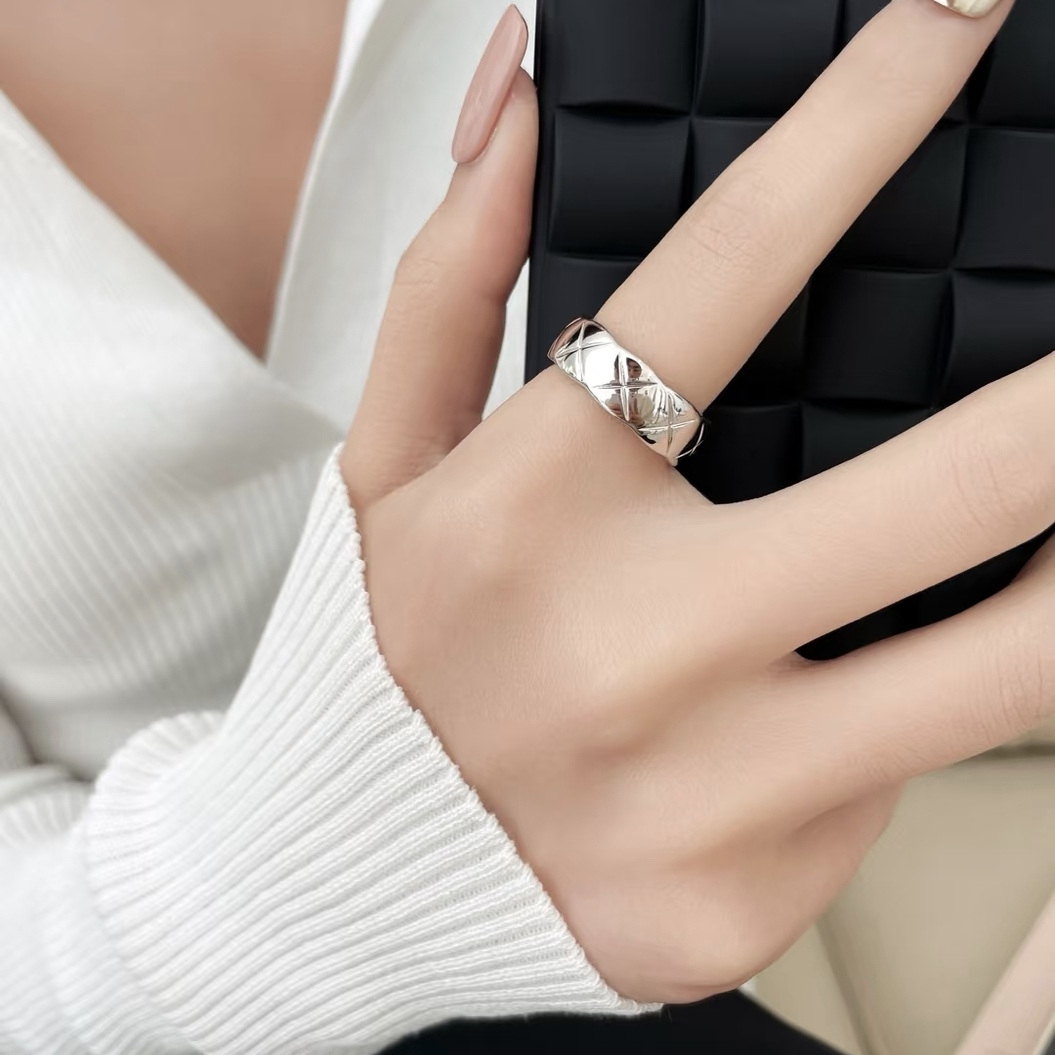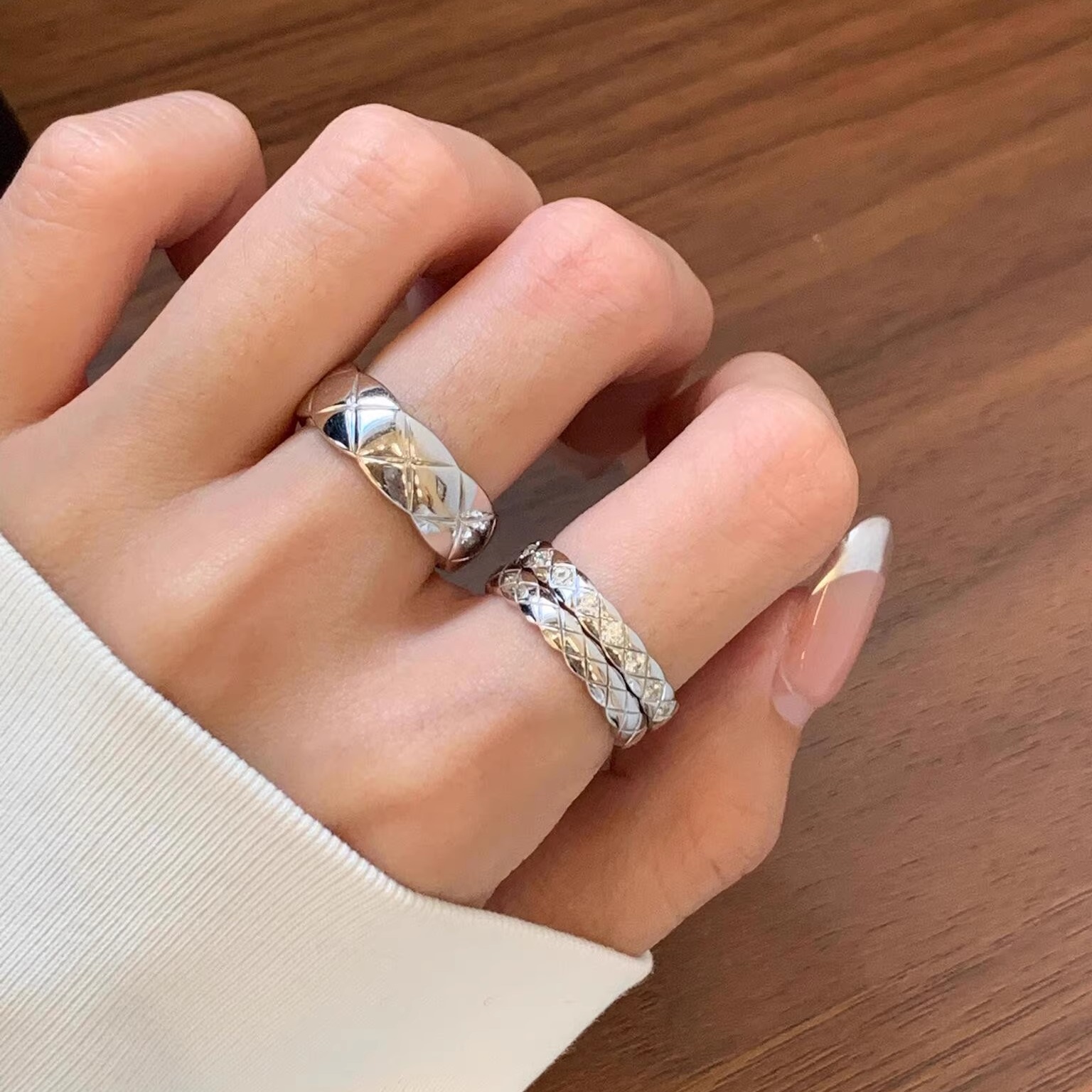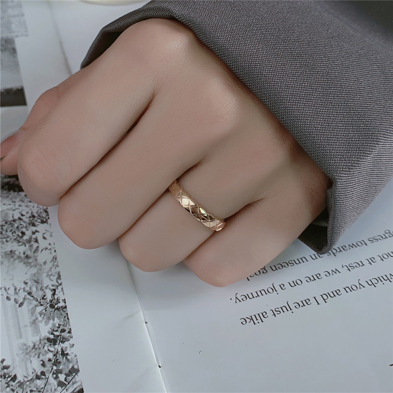 coco菱格纹戒指女小香风18k玫瑰金轻奢高级感菱形格叠戴情侣对戒
