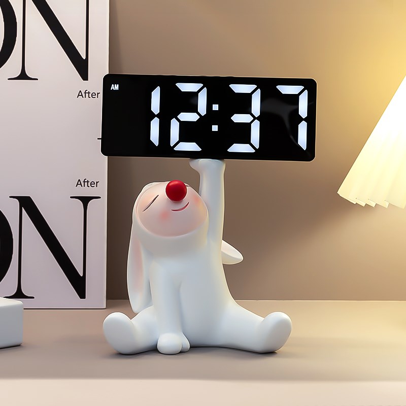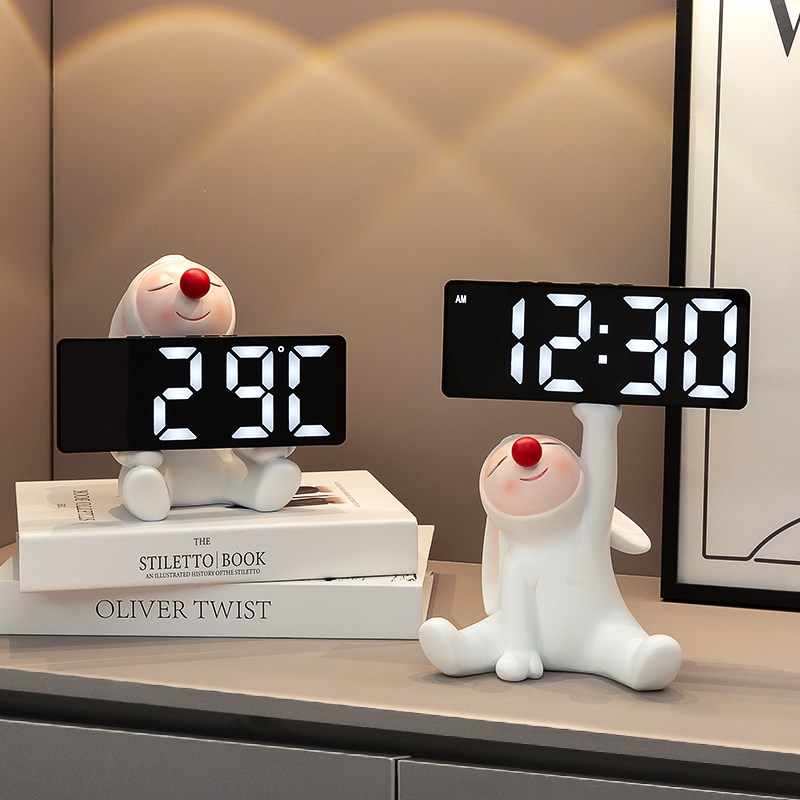 兔子桌面时钟摆件创意玄关客厅电视柜酒柜装饰数字智能钟表摆台式