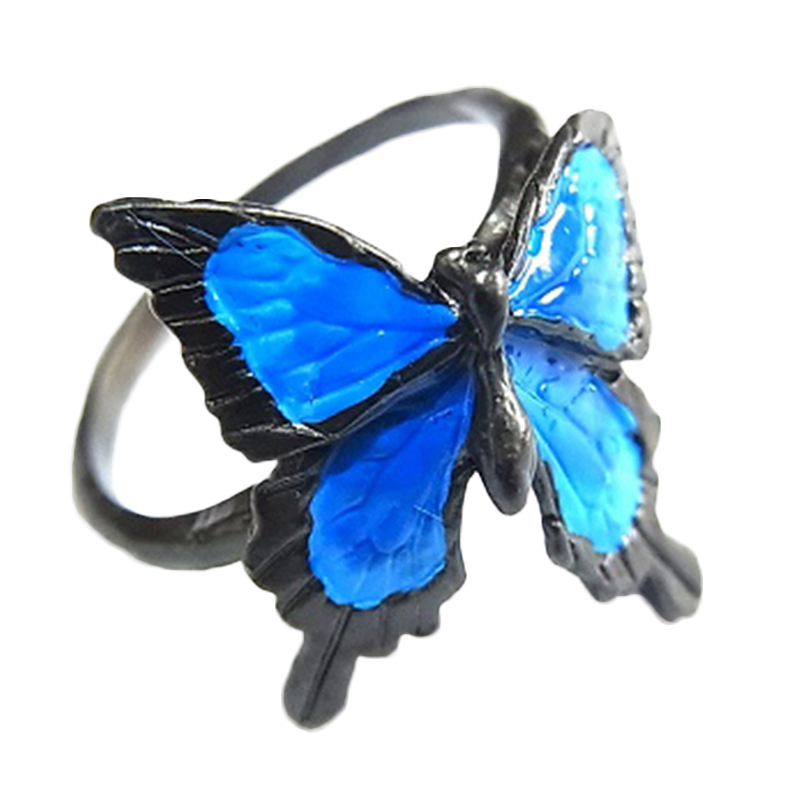 Palnart poc蝴蝶翅膀立体超仙蓝闪蝶夸张个性原创手工女发饰戒指
