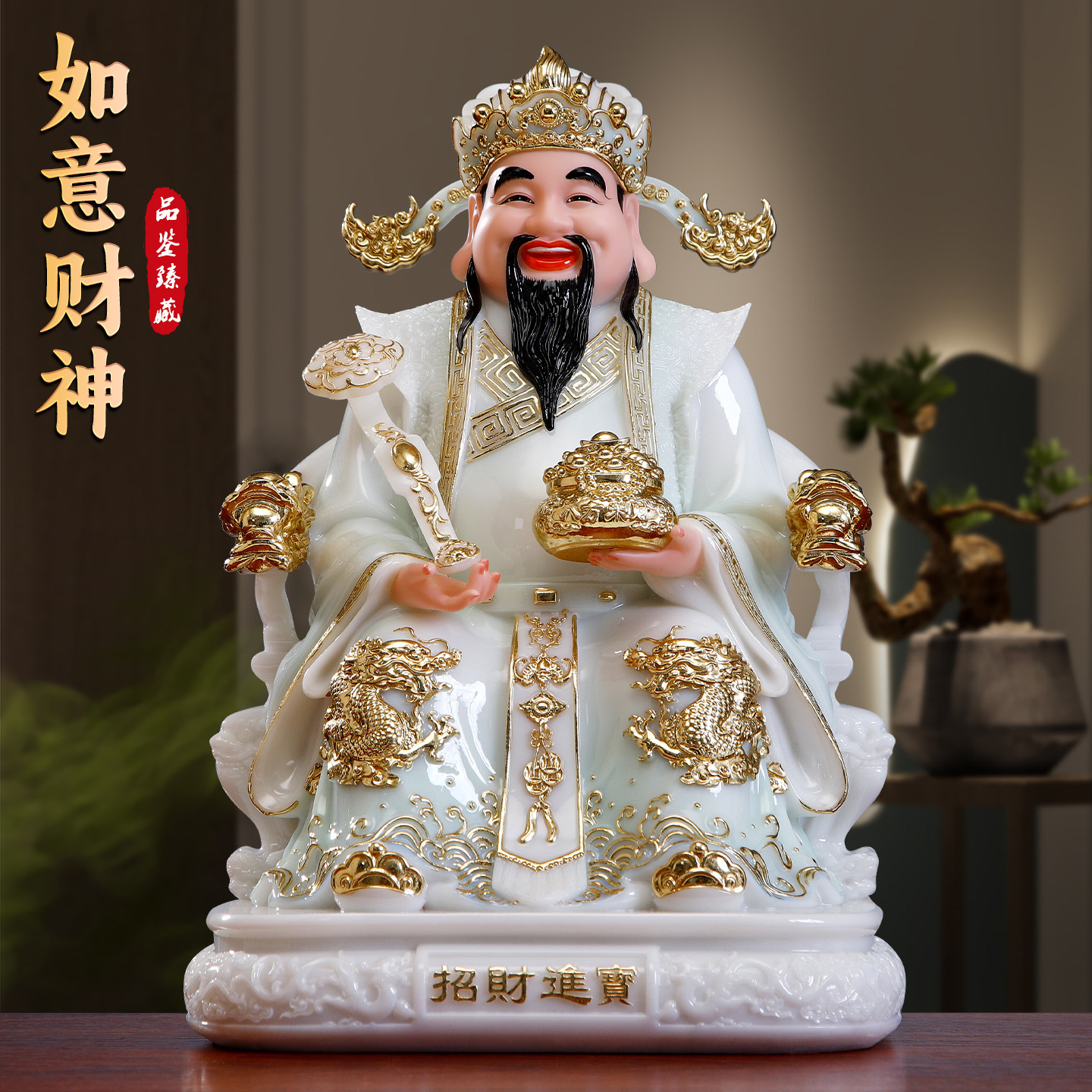 汉白玉财神爷佛像供奉家用商铺公司开业招财摆件办公室文财神神像