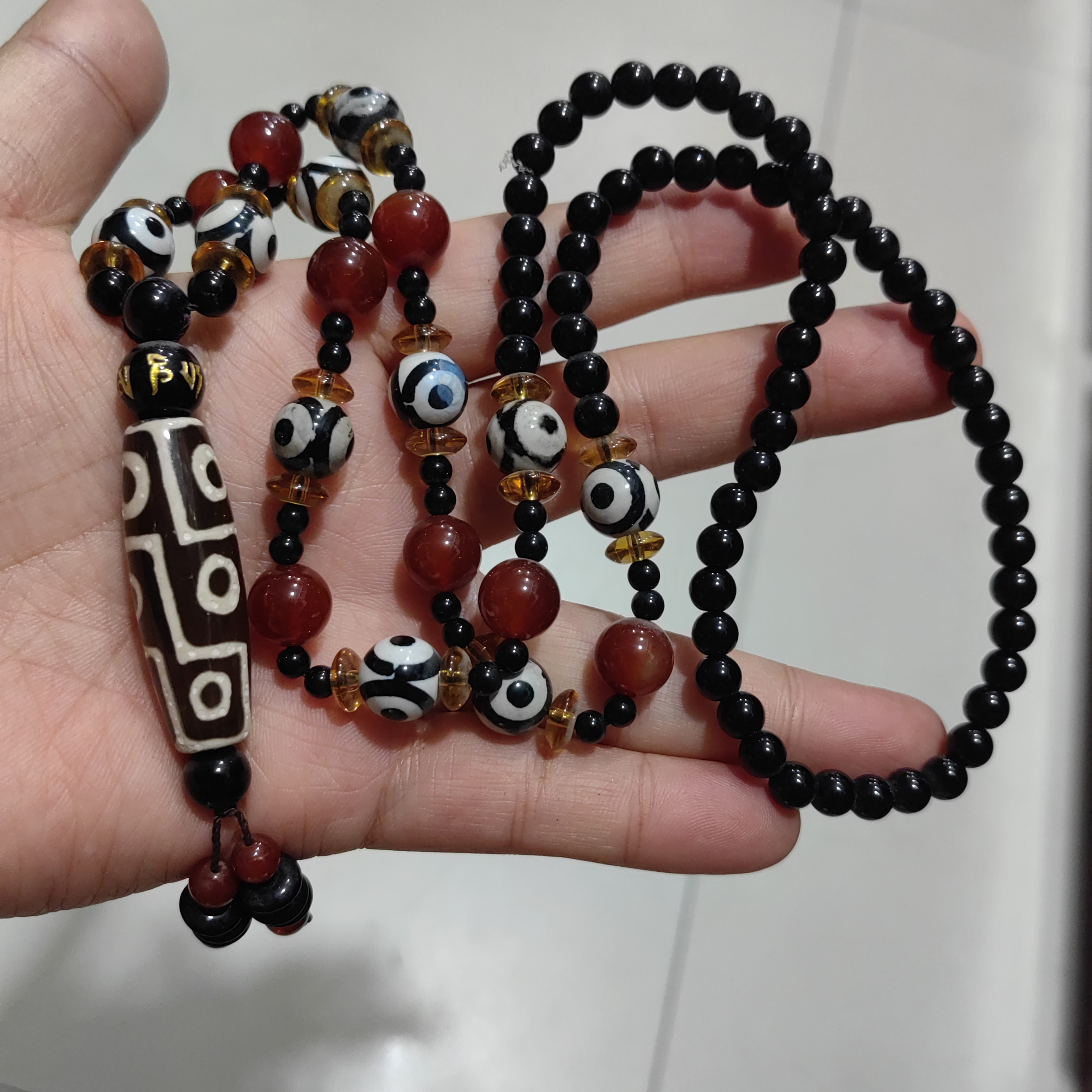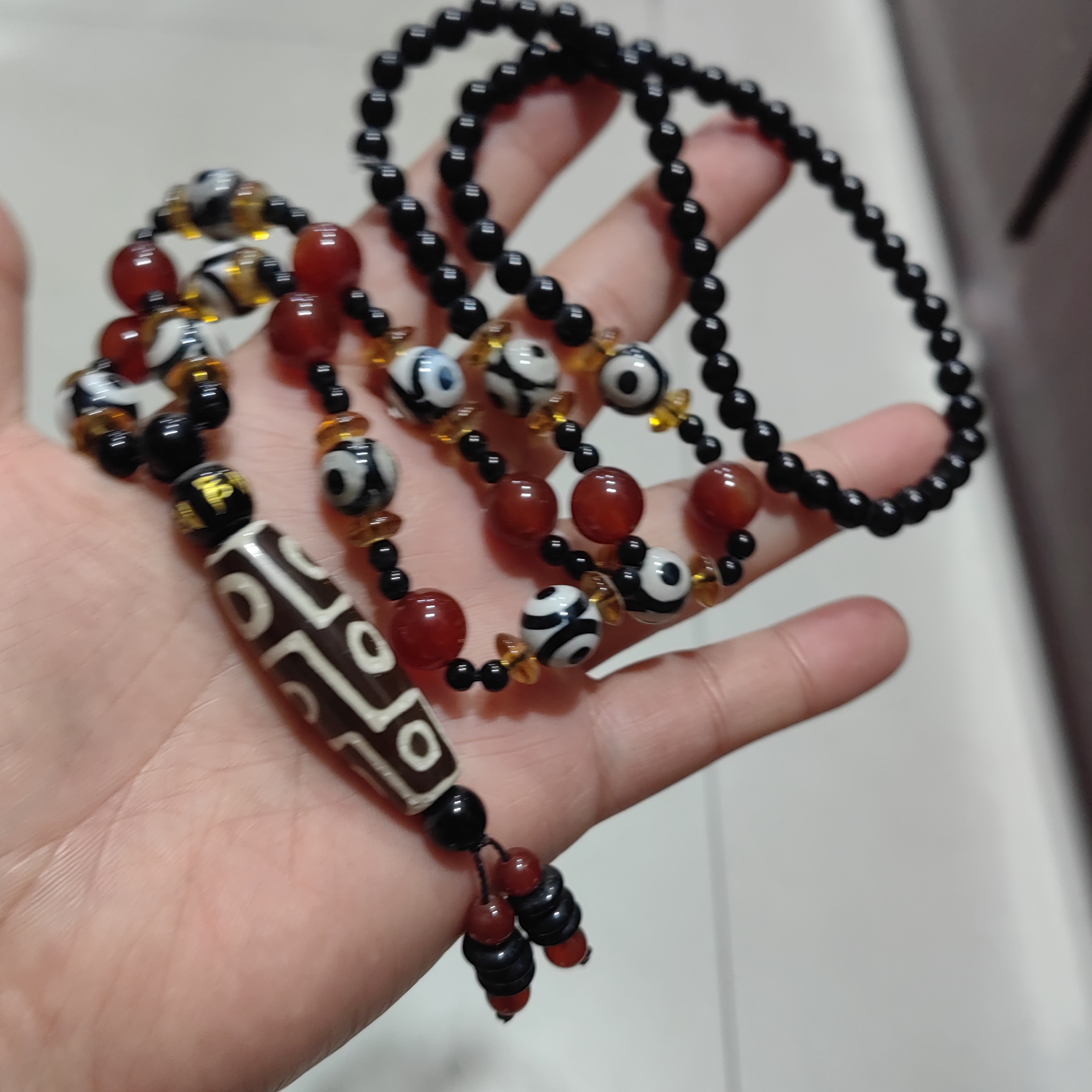 精致玛瑙眼纹珠子配黑红色项链男女款民族风小众设计简约项链饰品