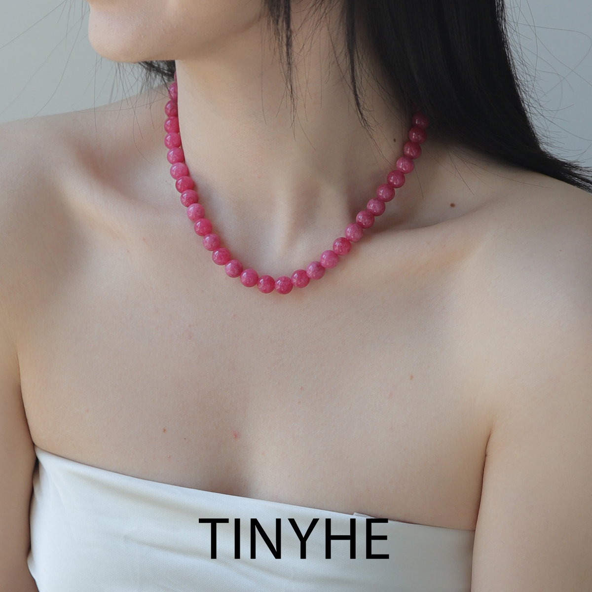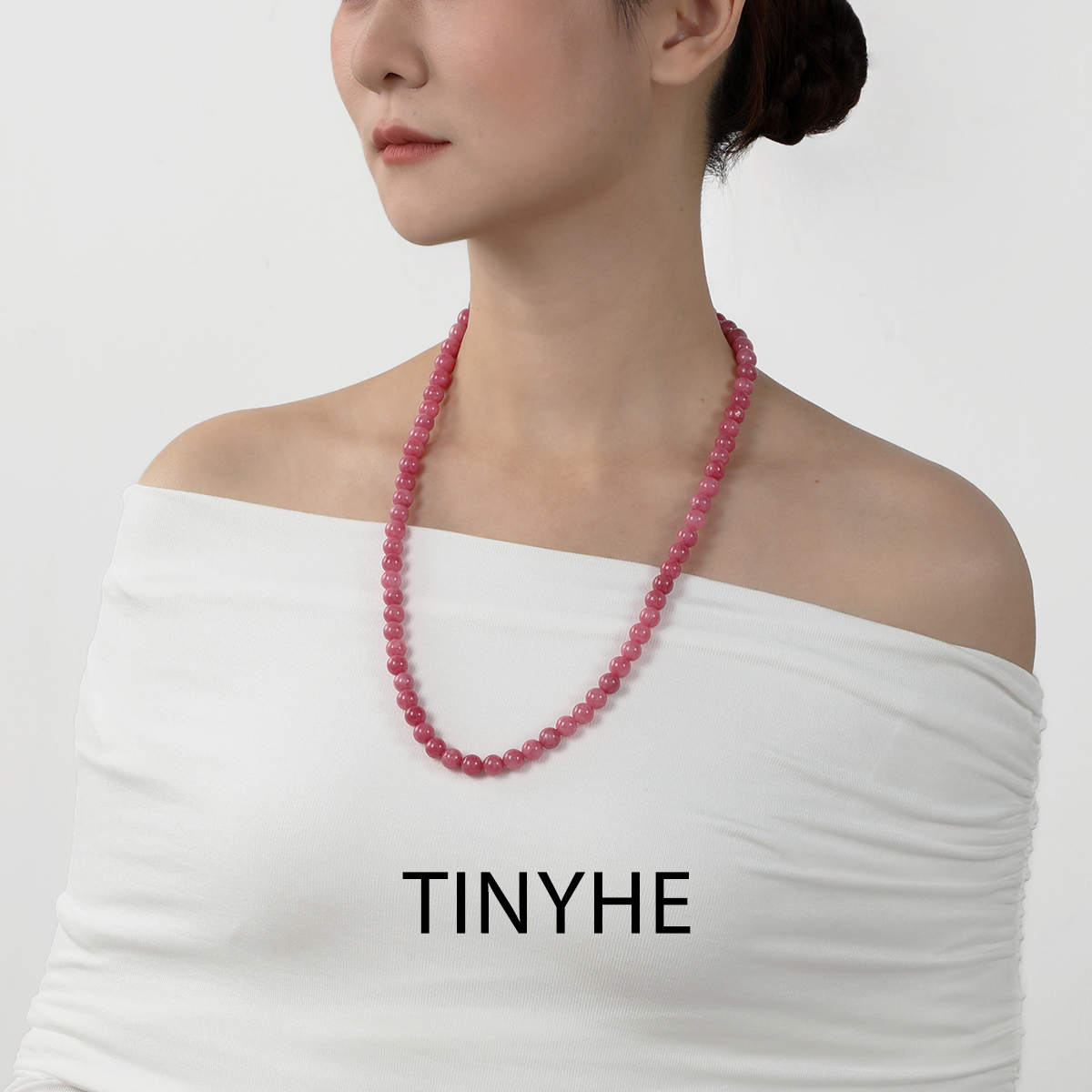 925纯银蔷薇石项链女轻奢小众锁骨链水晶珠串颈链秋冬毛衣链原创