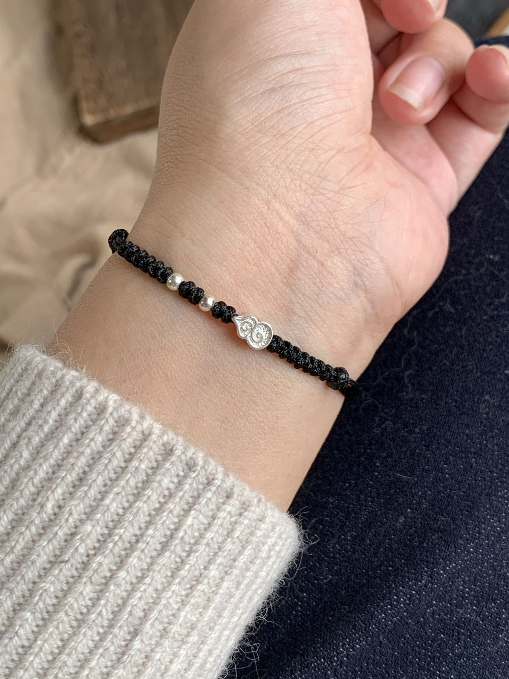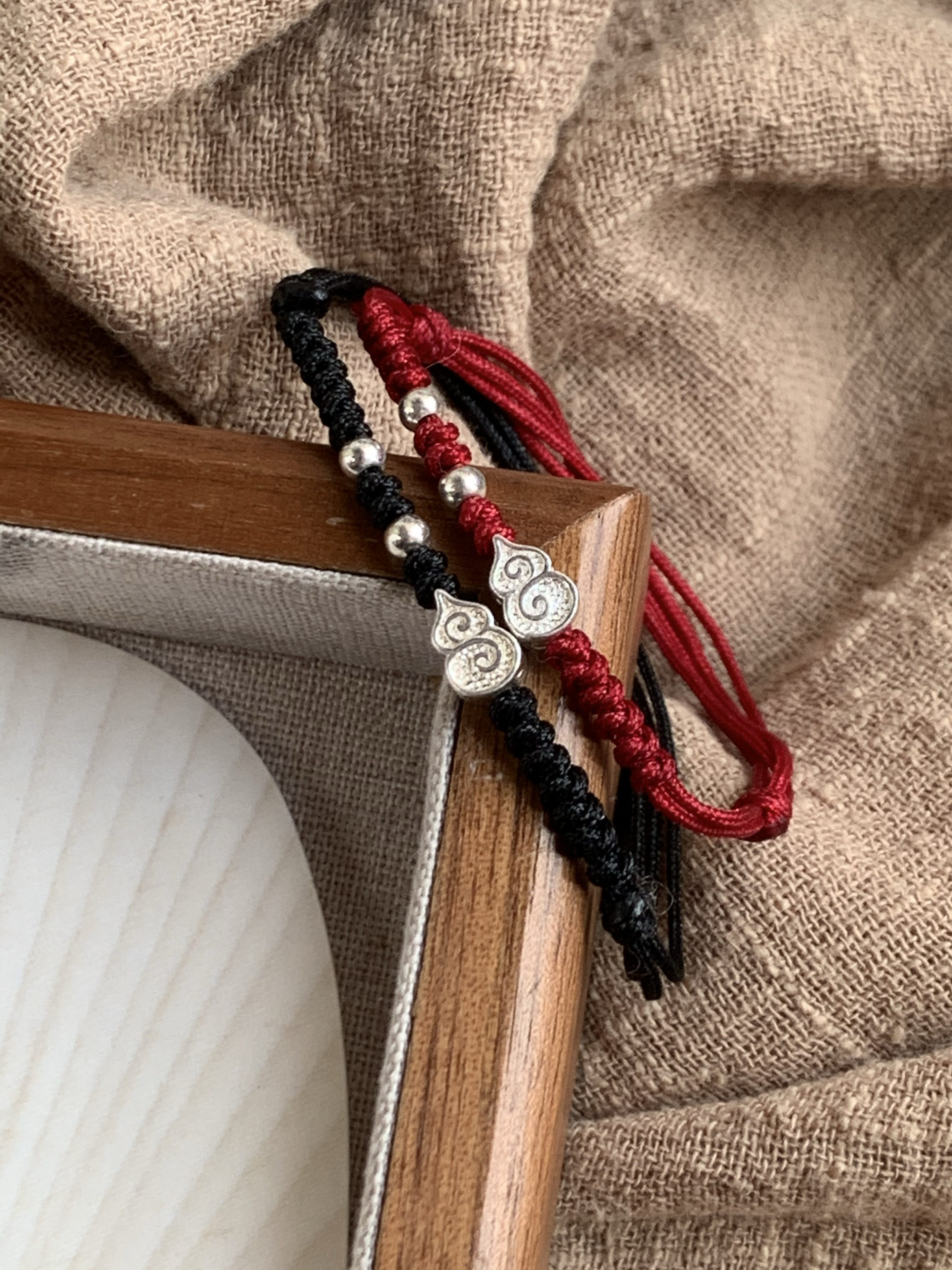「福禄双全」手工编织红绳手链本命年纯银925葫芦手绳情侣礼物