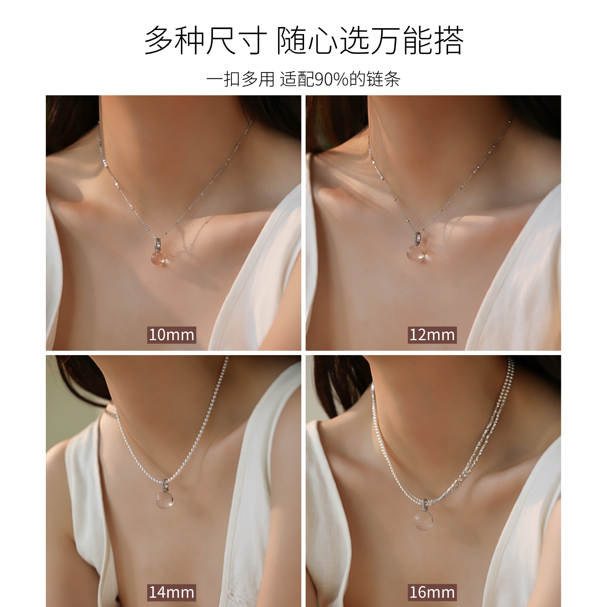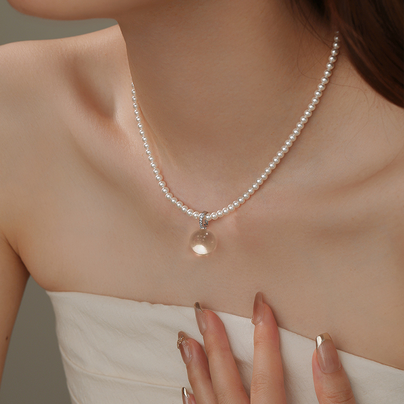 天然白水晶吊坠单坠搭配珍珠项链女配饰扣头锁骨链可拆卸万能扣