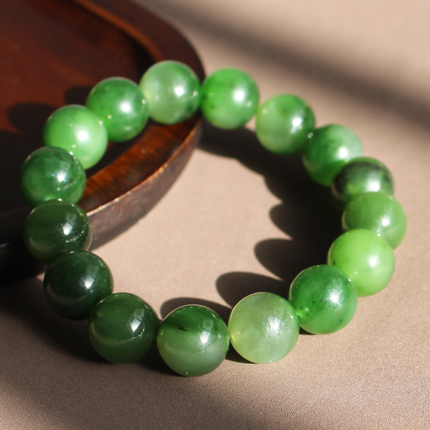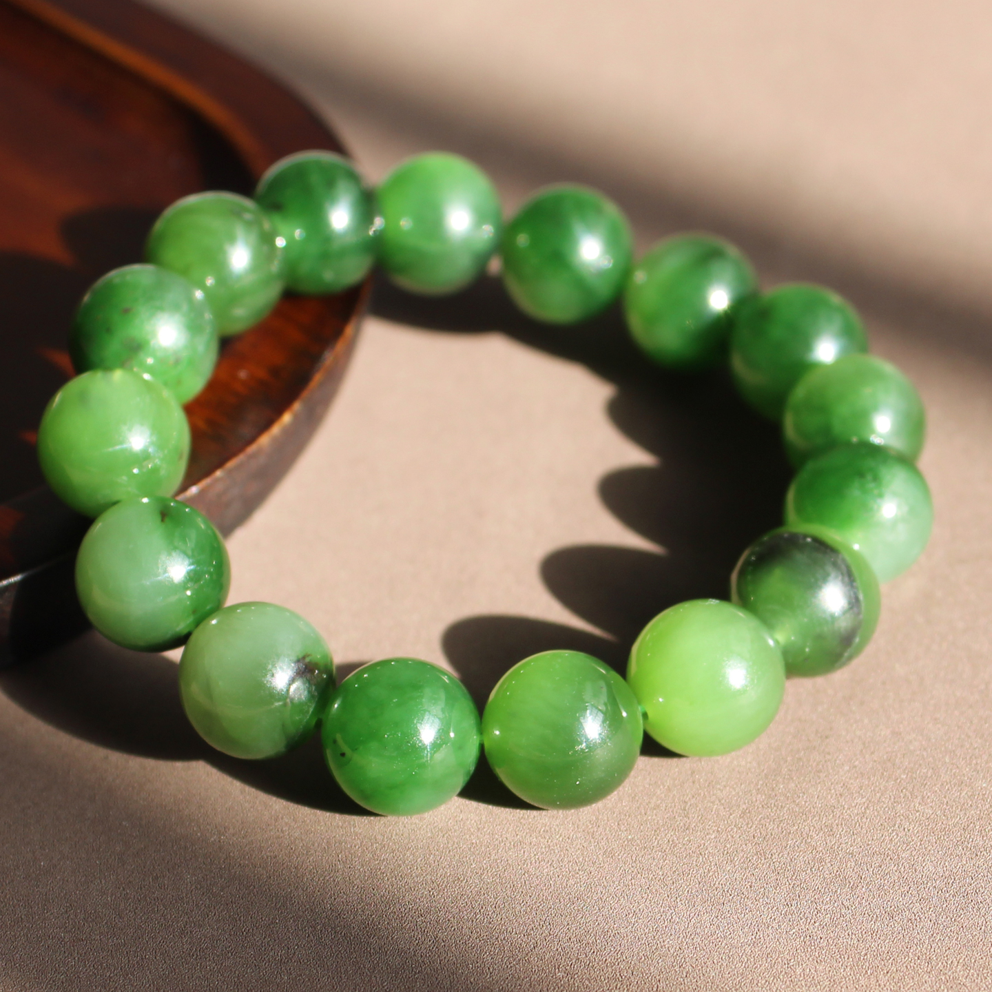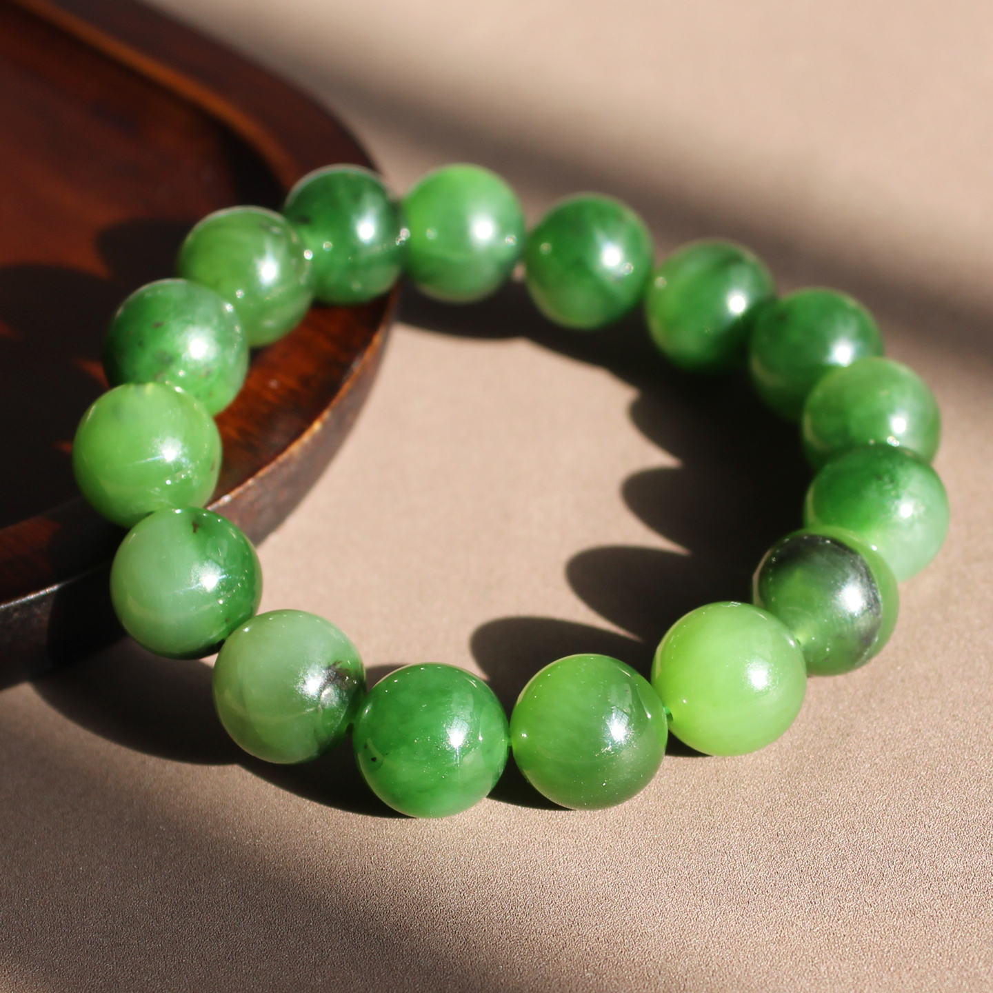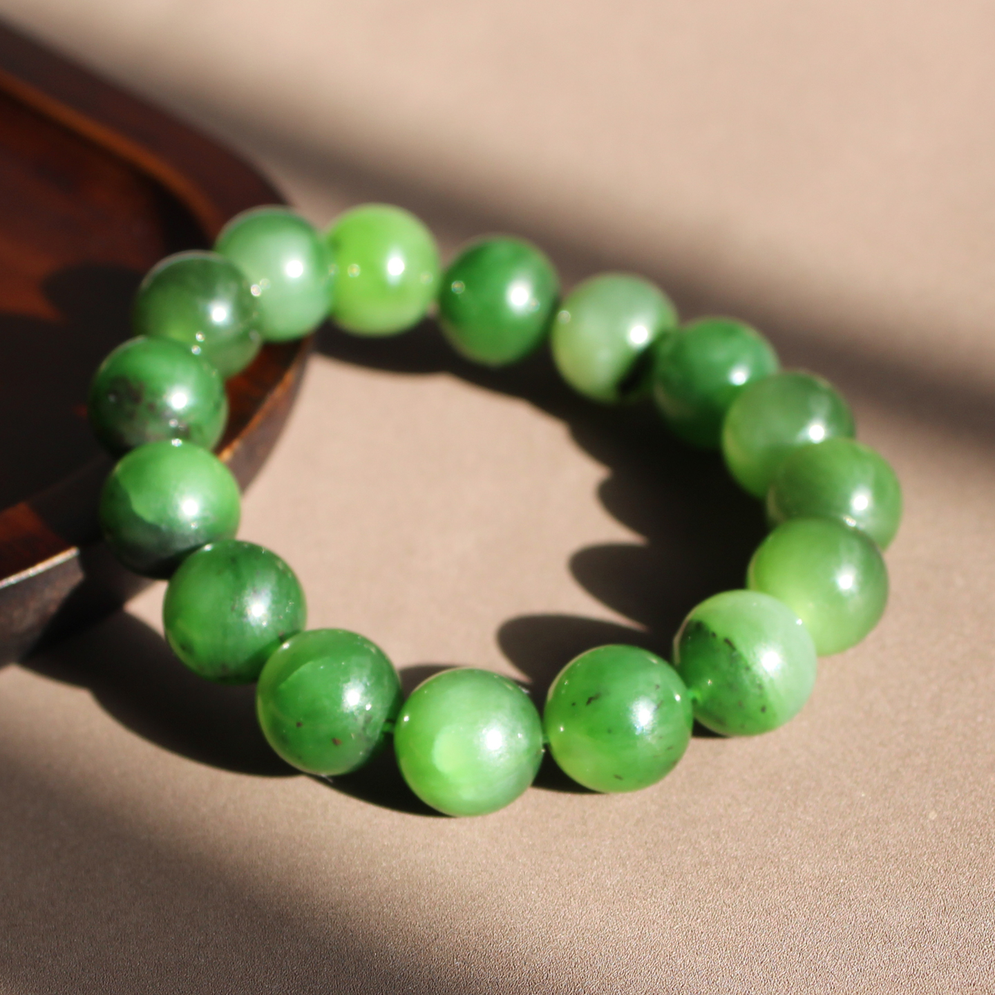 方言和田玉珍品特惠俄罗斯老坑红皮菠菜绿碧玉圆珠12mm手串手链A1