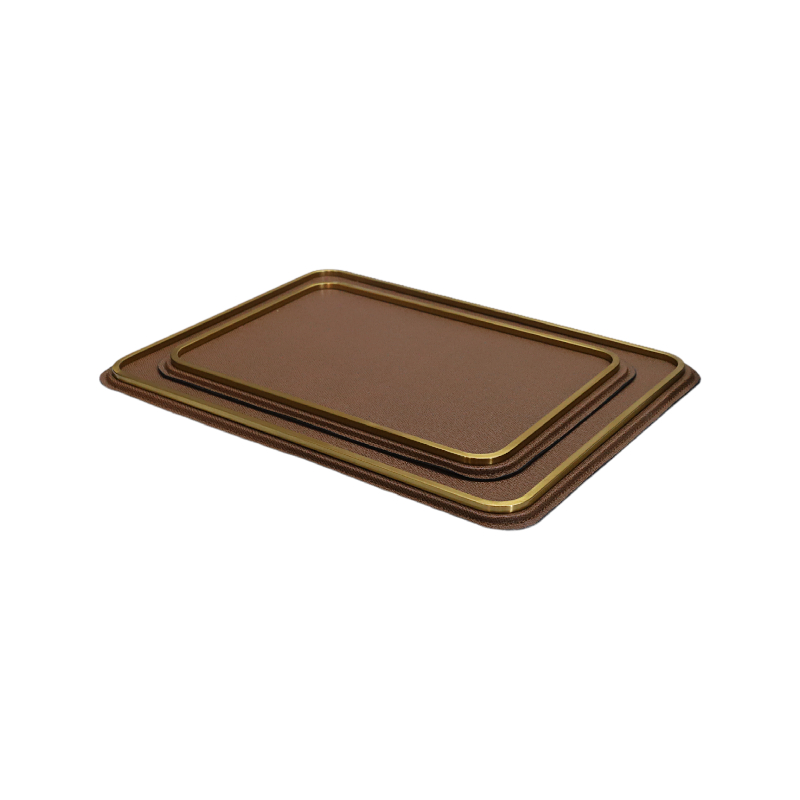 中式极简金属皮革托盘摆件家居客厅茶几桌面收纳茶盘样板间装饰品