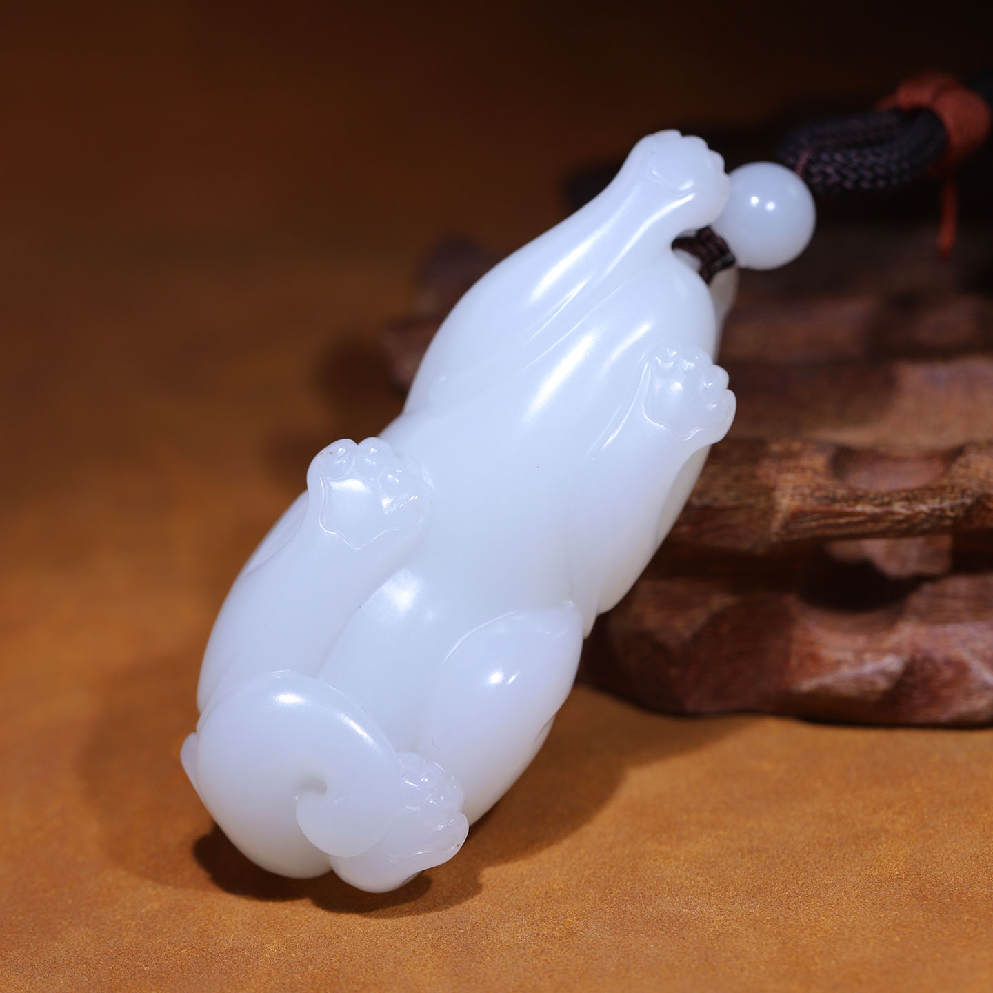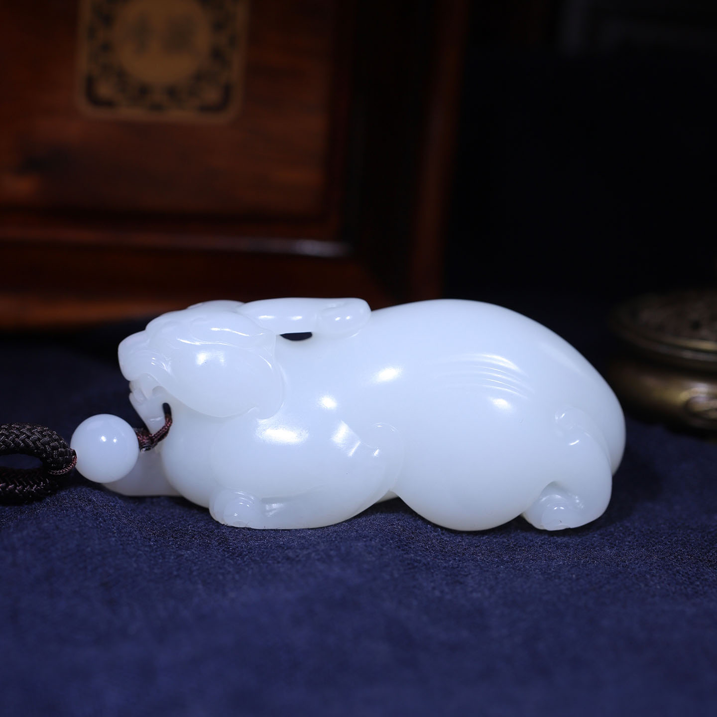玉秀新疆和田玉立体貔貅吊坠男女挂件苏工籽料雕刻羊脂定制带证书