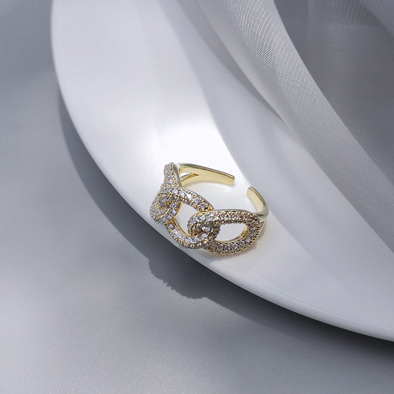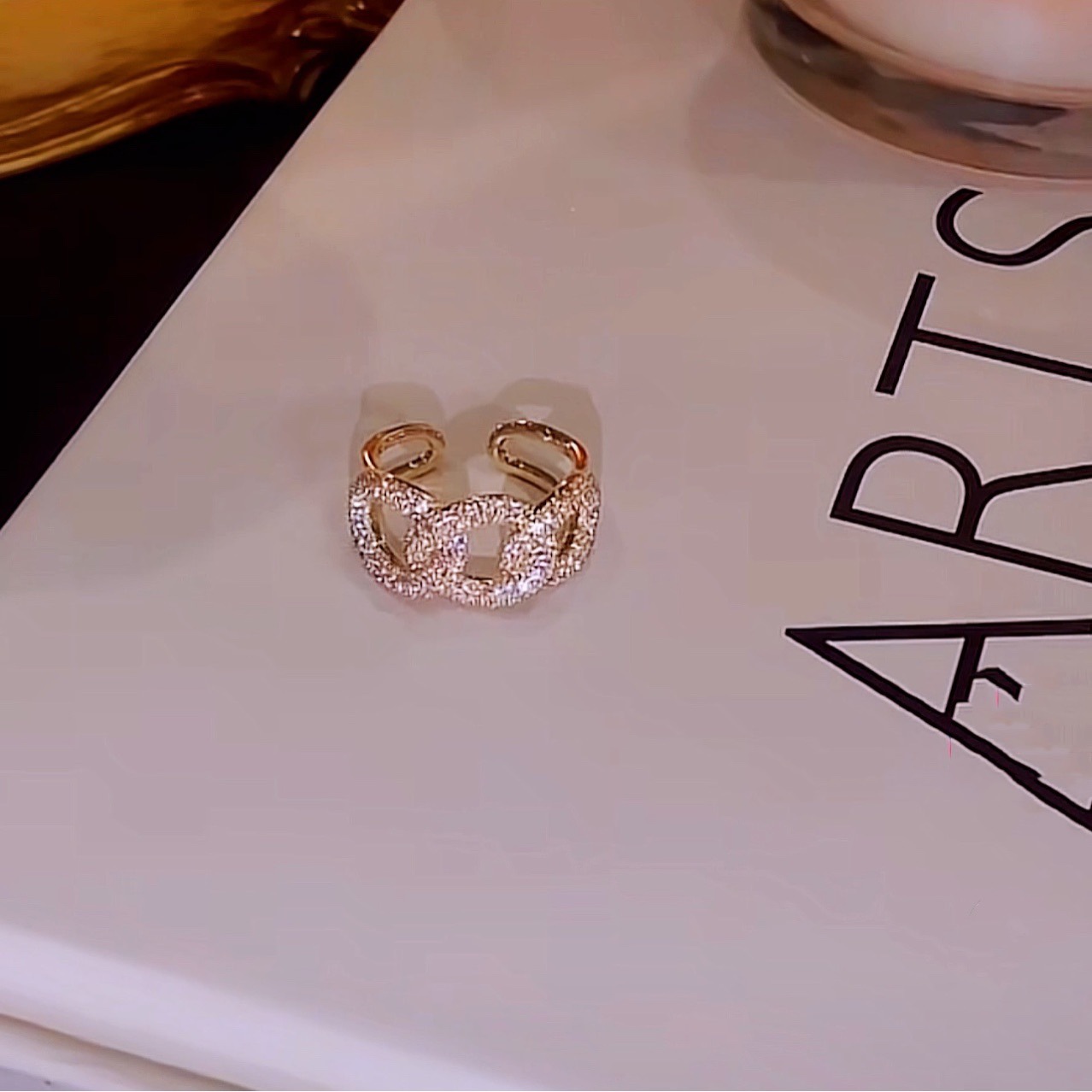 日式轻奢链条满钻戒指冷淡风感简约开口可调节指环网红戒指女