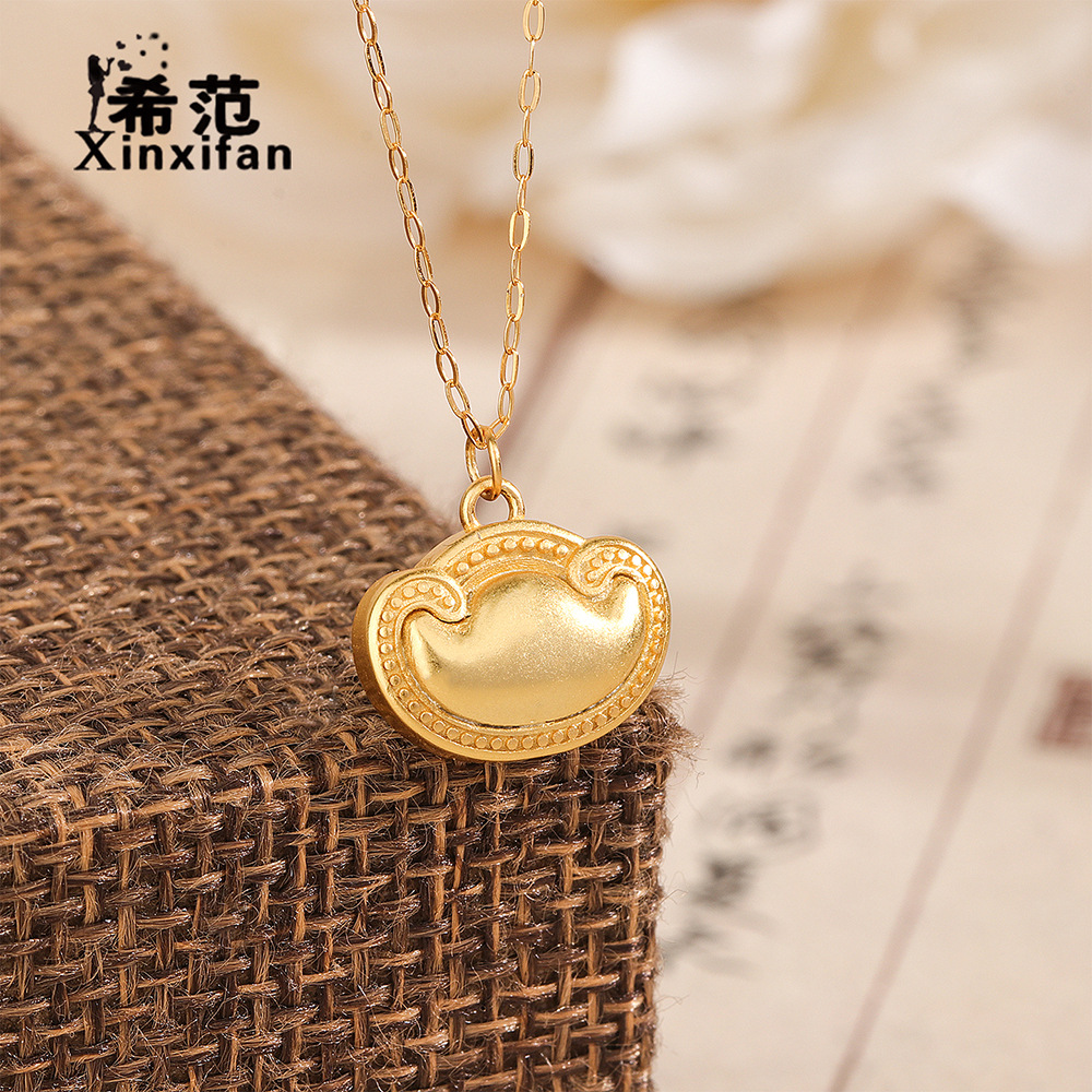 S925纯银大元宝项链女新中式国风哑光效果吊坠锁骨链元宝锁包链