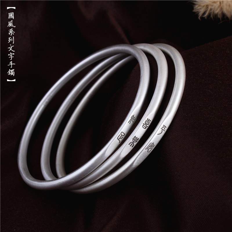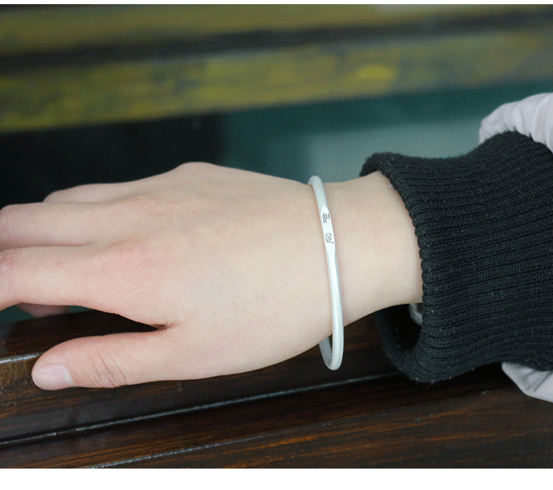 999足银手镯女纯银吉言细款复古简约中国风小众实心闭口慎独刻字