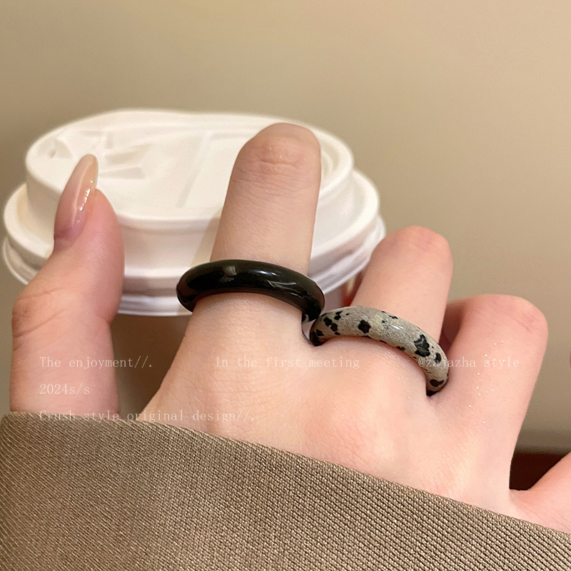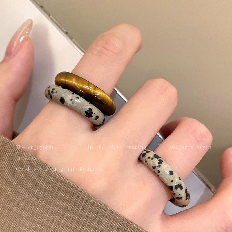 天然虎眼石戒指女美拉德复古小众设计食指戒轻奢高级感斑点石指环