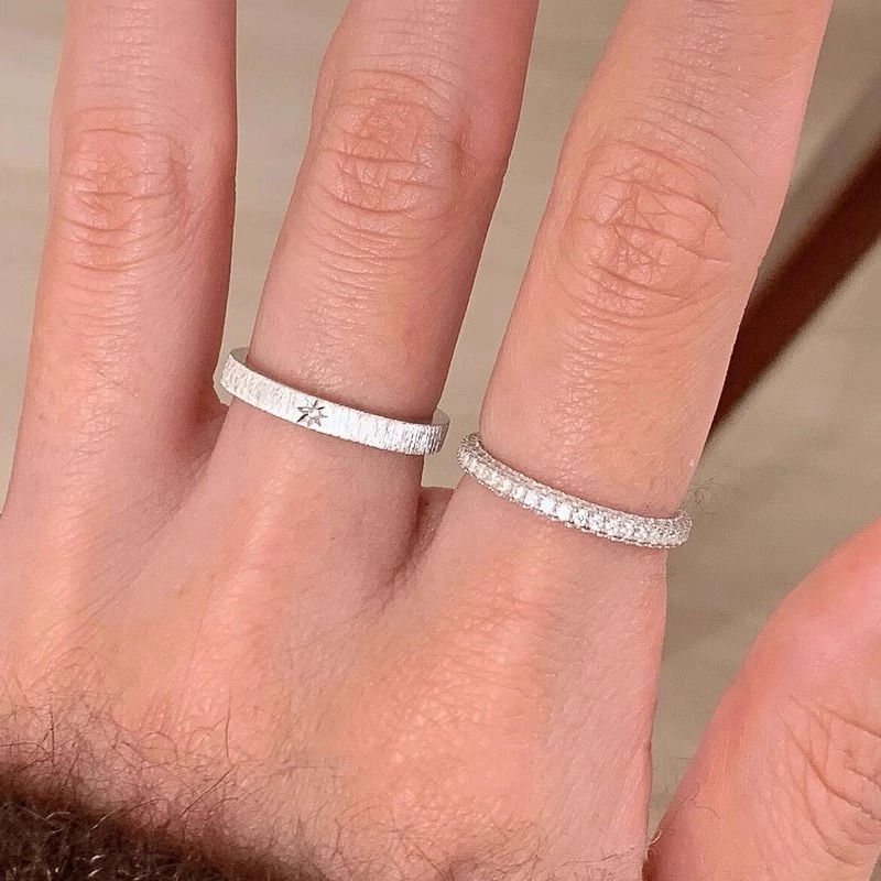 中古拉丝星芒素圈戒指女轻奢高级感闪钻闺蜜满天星食指戒组合叠戴