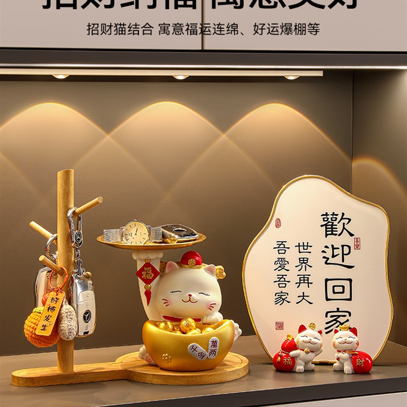 招财猫钥匙收纳摆件入户门鞋柜玄关置物架客厅装饰品乔迁新居礼物
